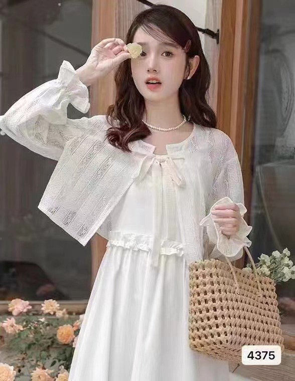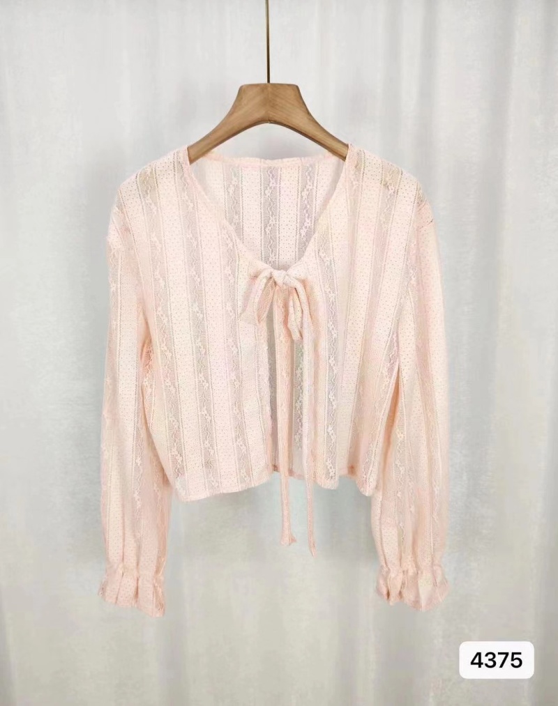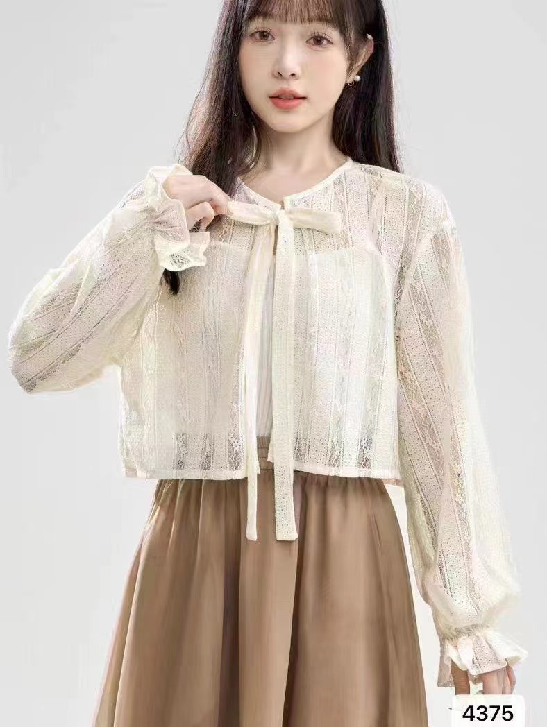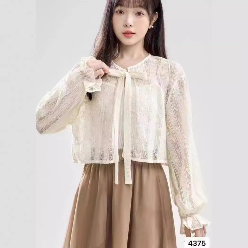 2024夏季新款韩版甜美清新百搭减龄蕾丝花边系带长袖短款防晒衣女