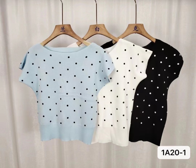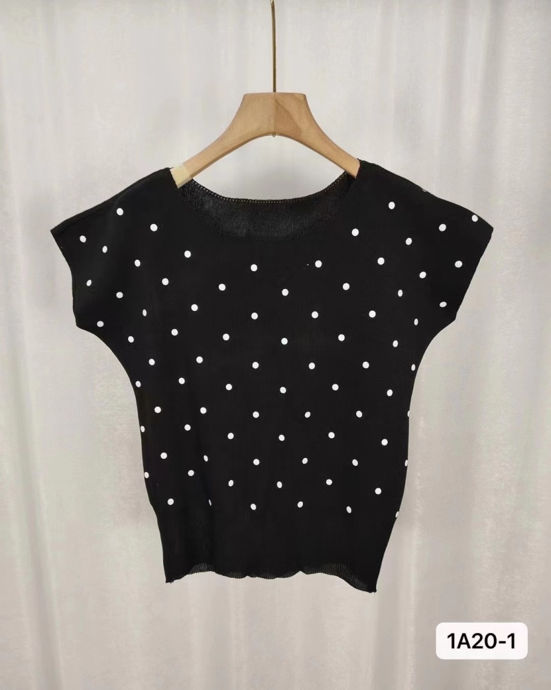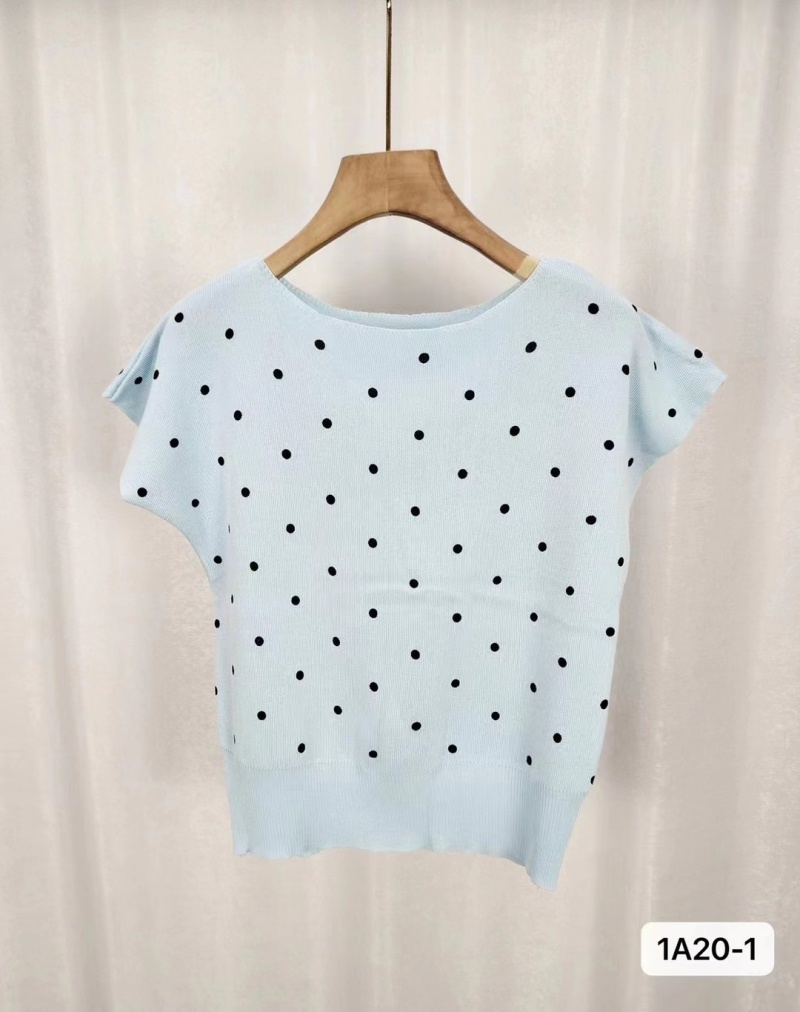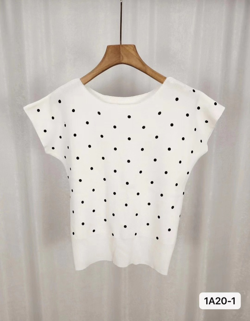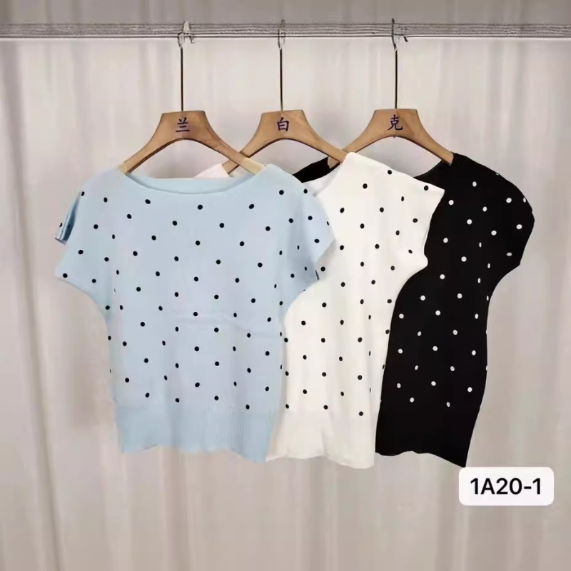 2024年夏季新款韩版甜美小清新圆领波点印花百搭短袖百搭短款上衣