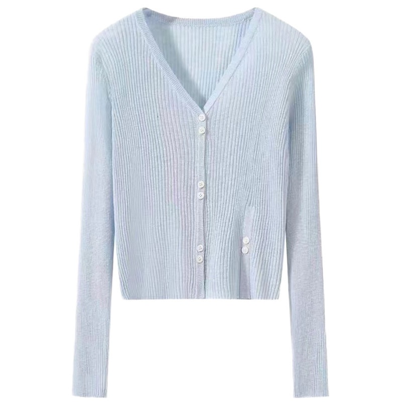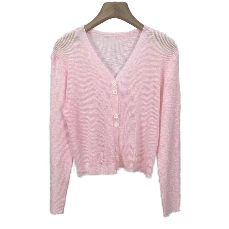 2024新款春秋季外搭简约学生长袖v领内搭针织外套防晒空调上衣女
