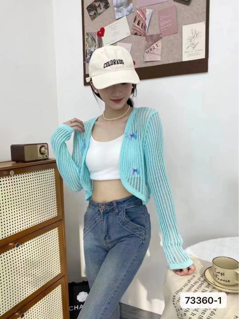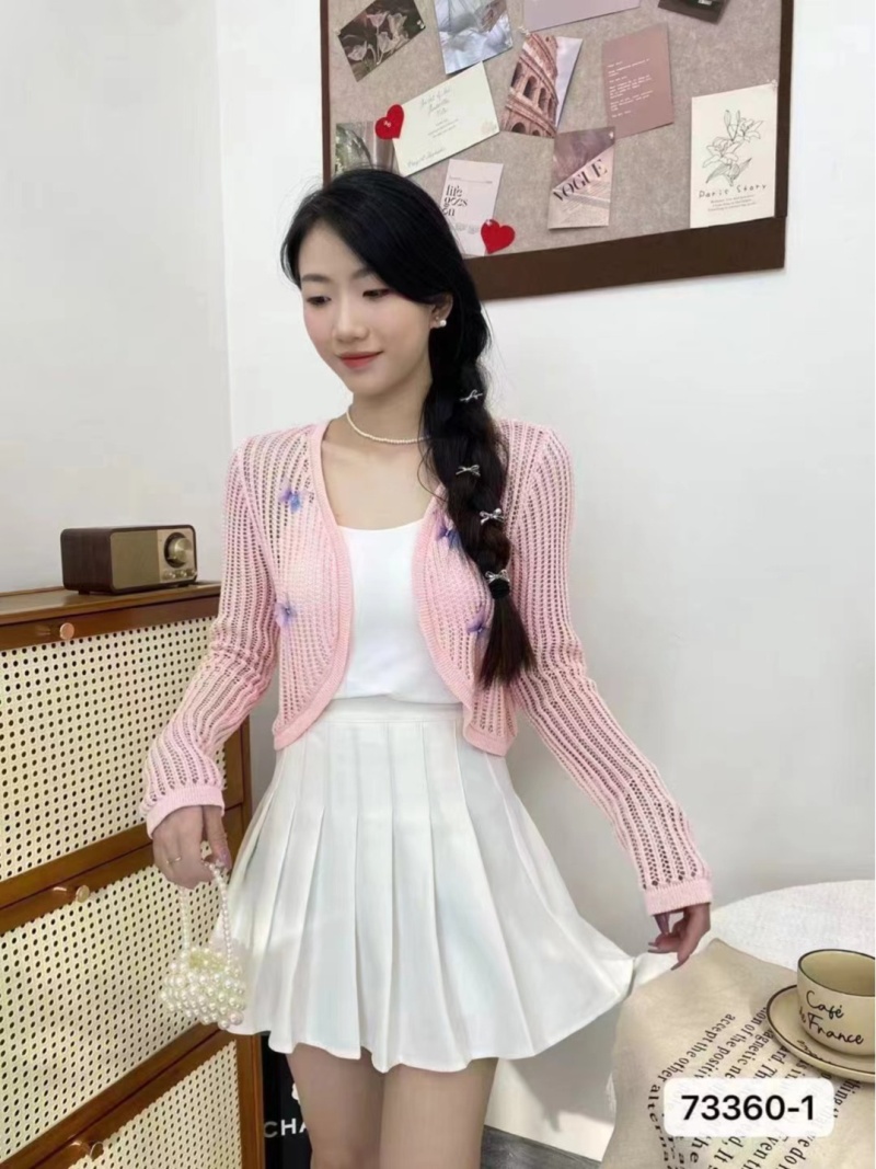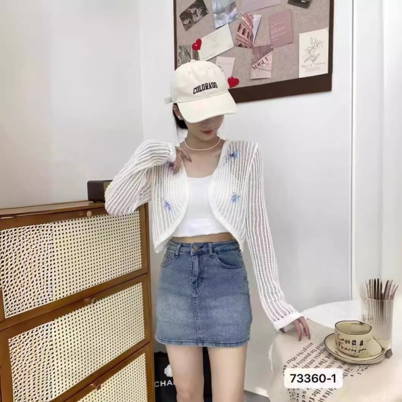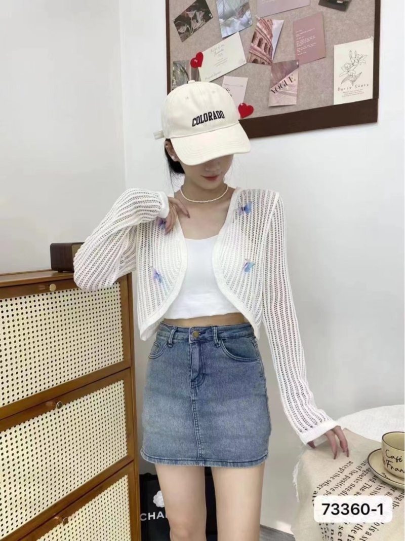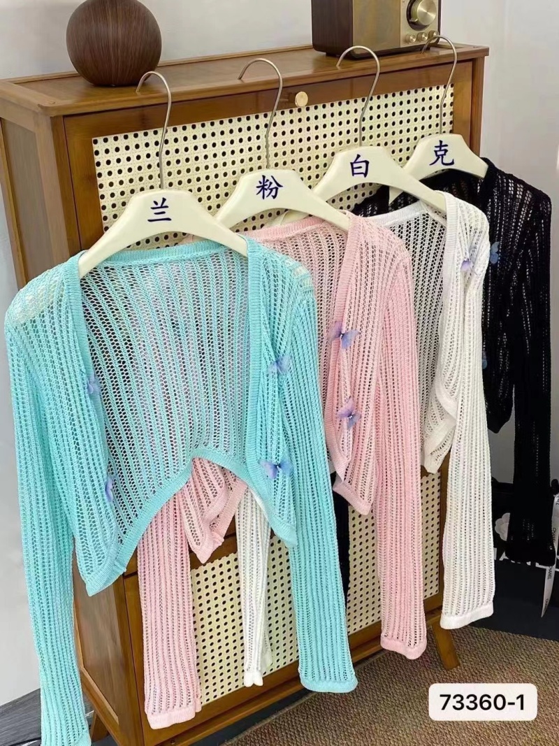 2024夏季新款韩版小众百搭设计感蝴蝶装饰镂空防晒衣短款上衣女潮