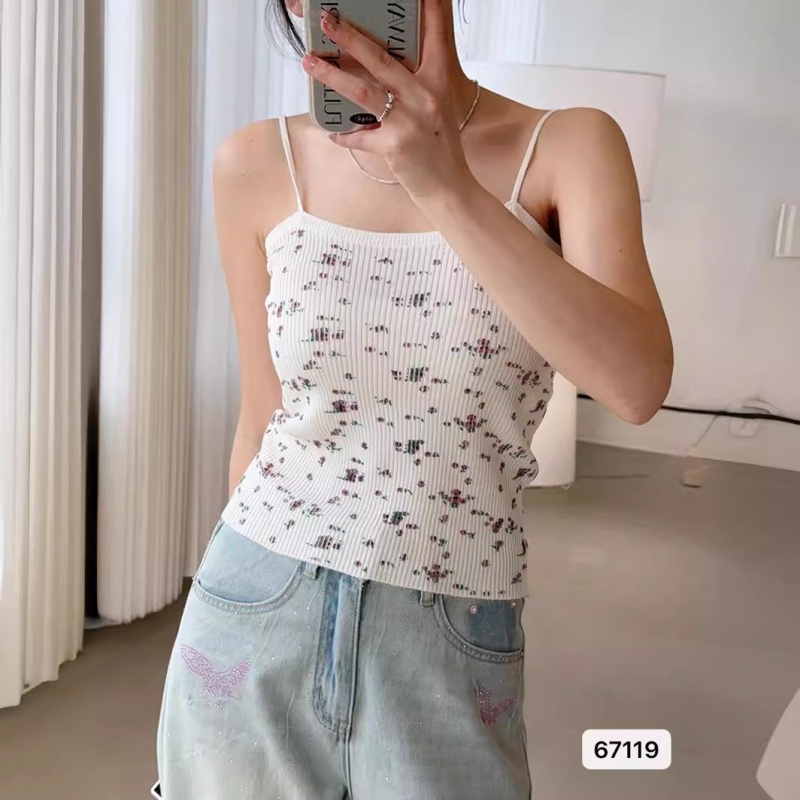 夏季新款山茶花刺绣小香风bm带背心打底针织背心吊带性感上衣女潮