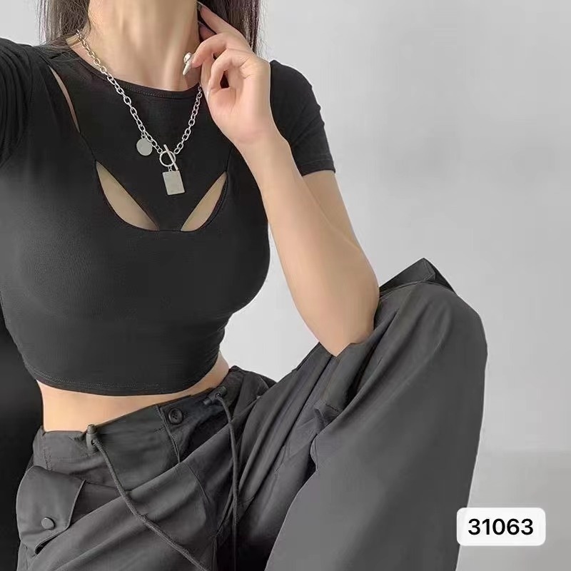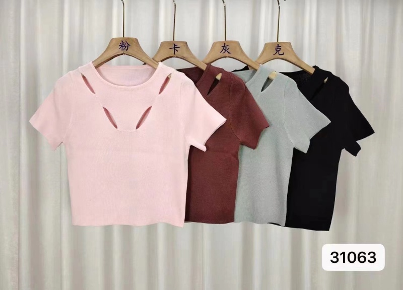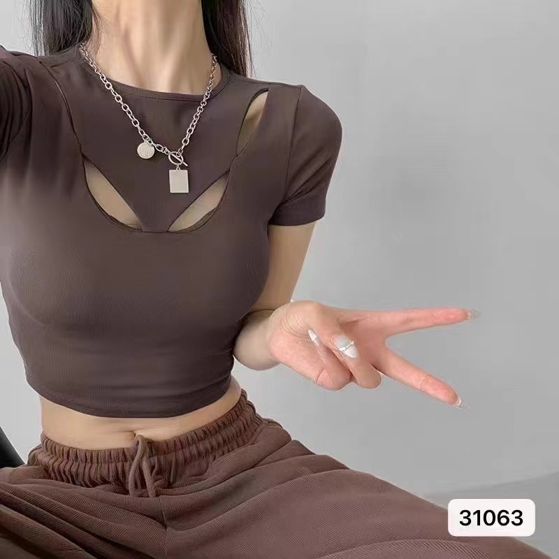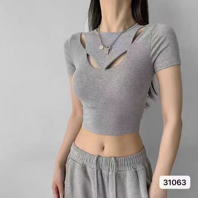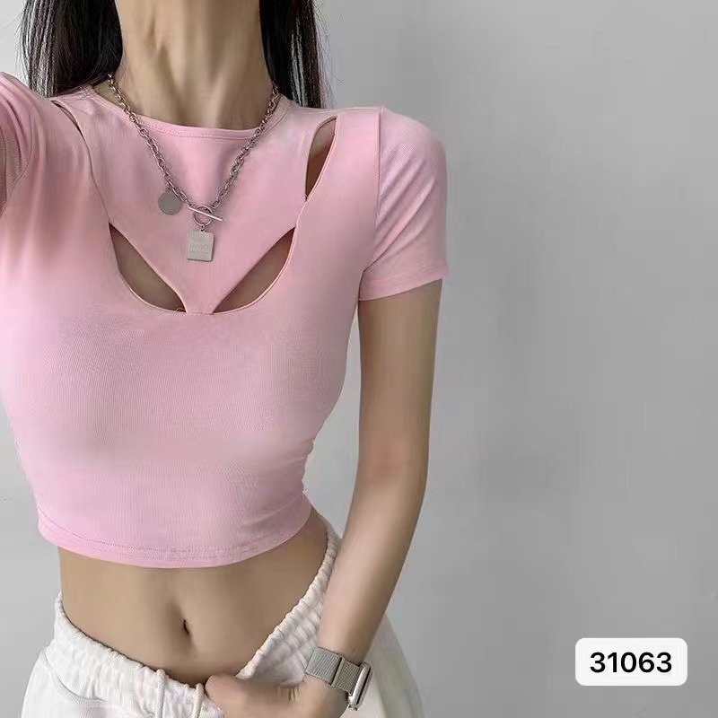 2024夏季新款韩版甜美清新性感辣妹圆领镂空修身显瘦短袖上衣女潮