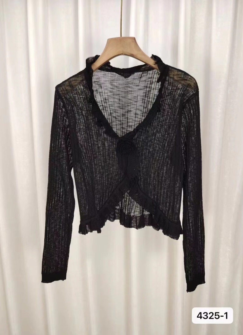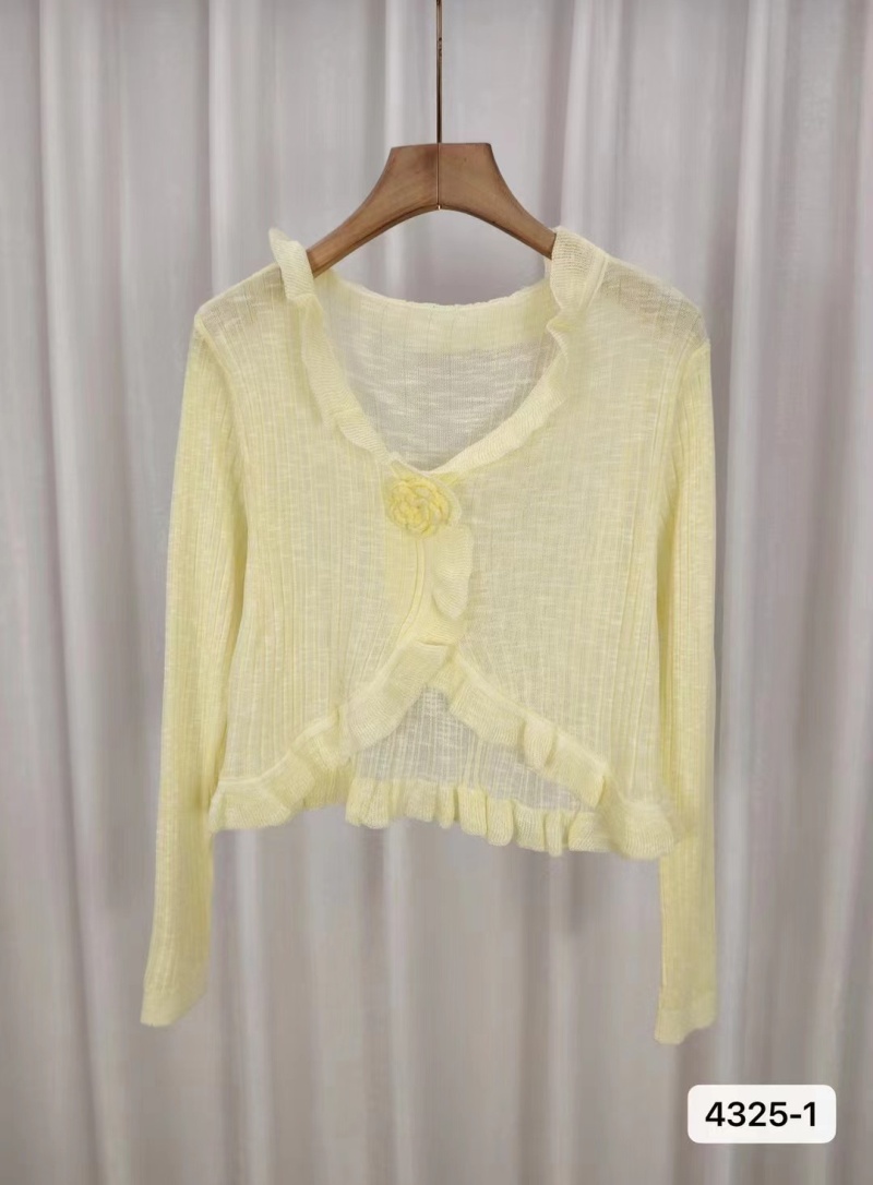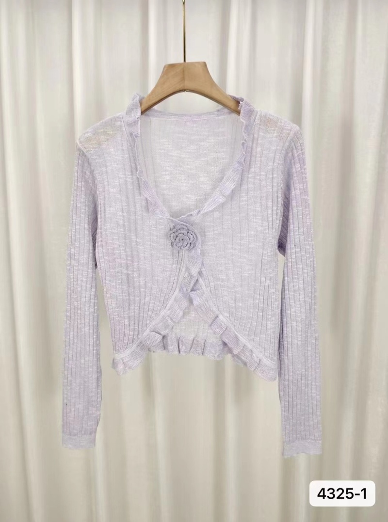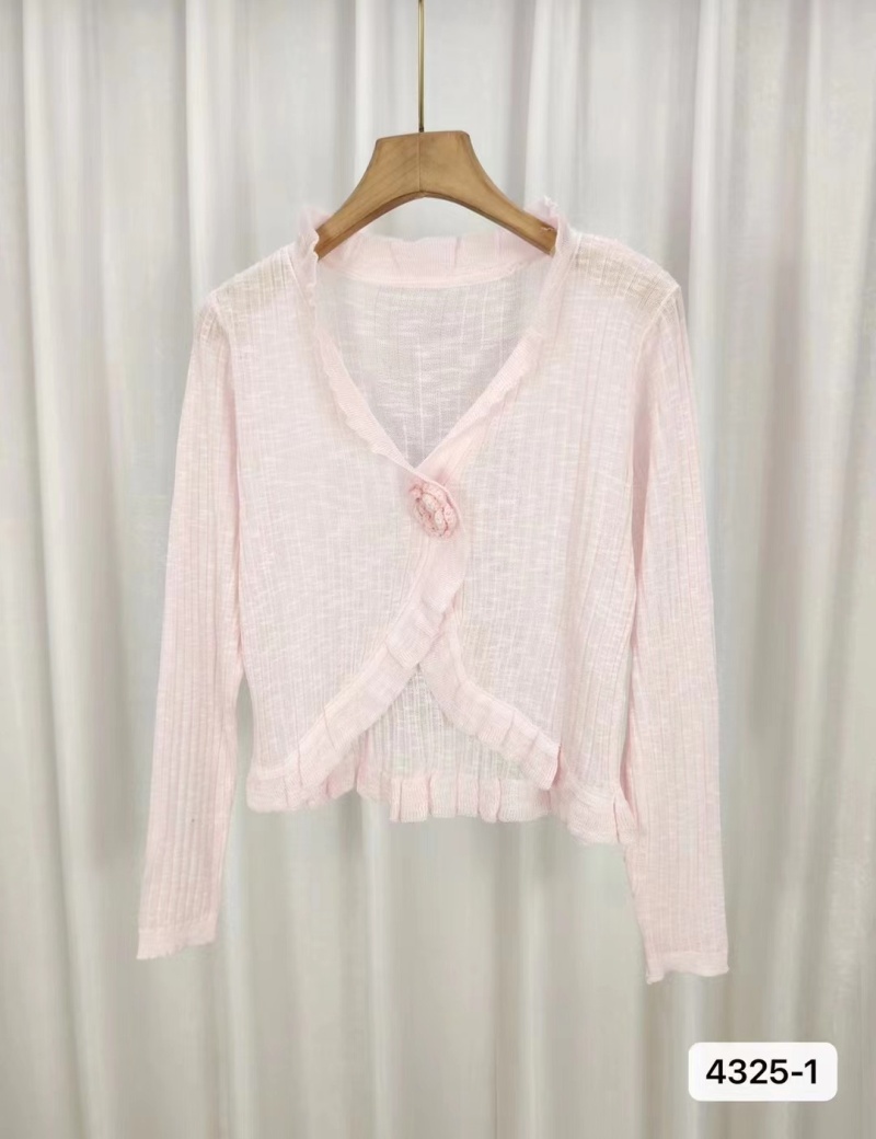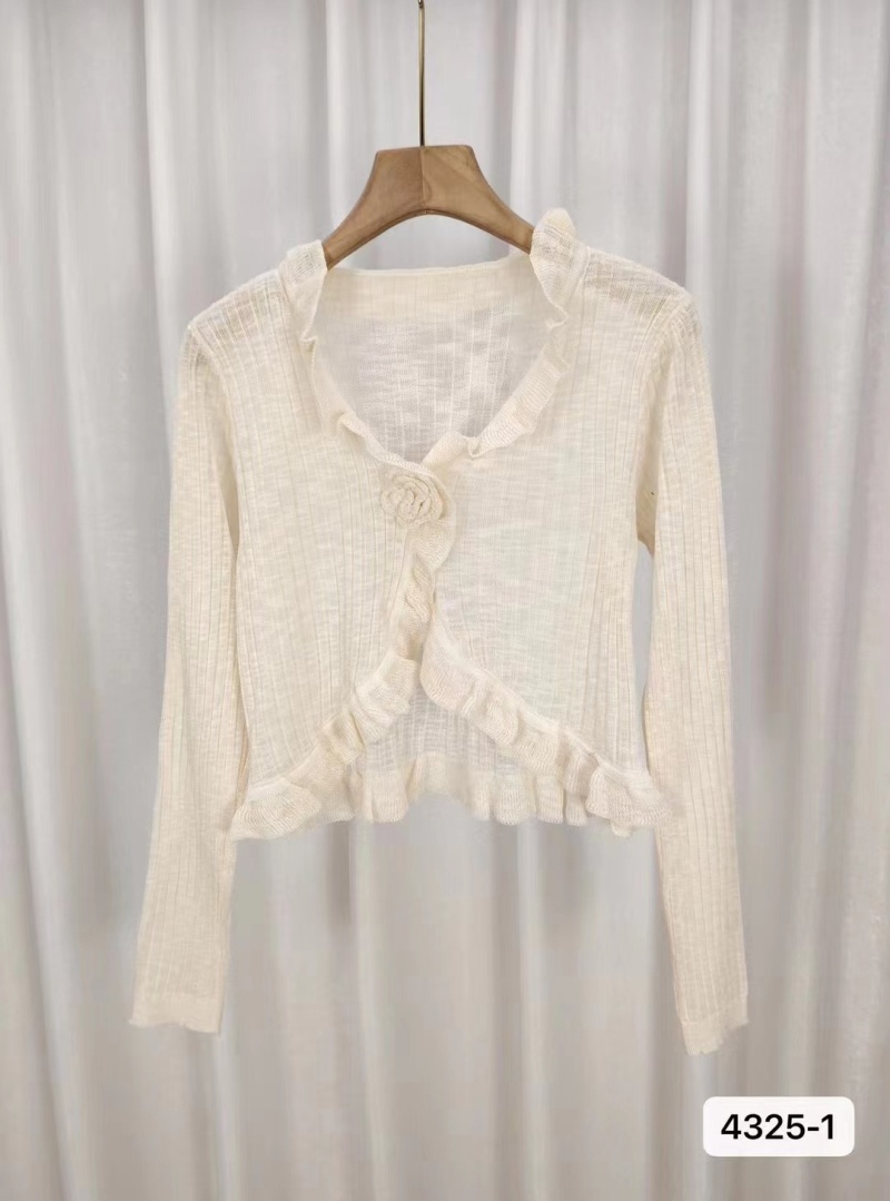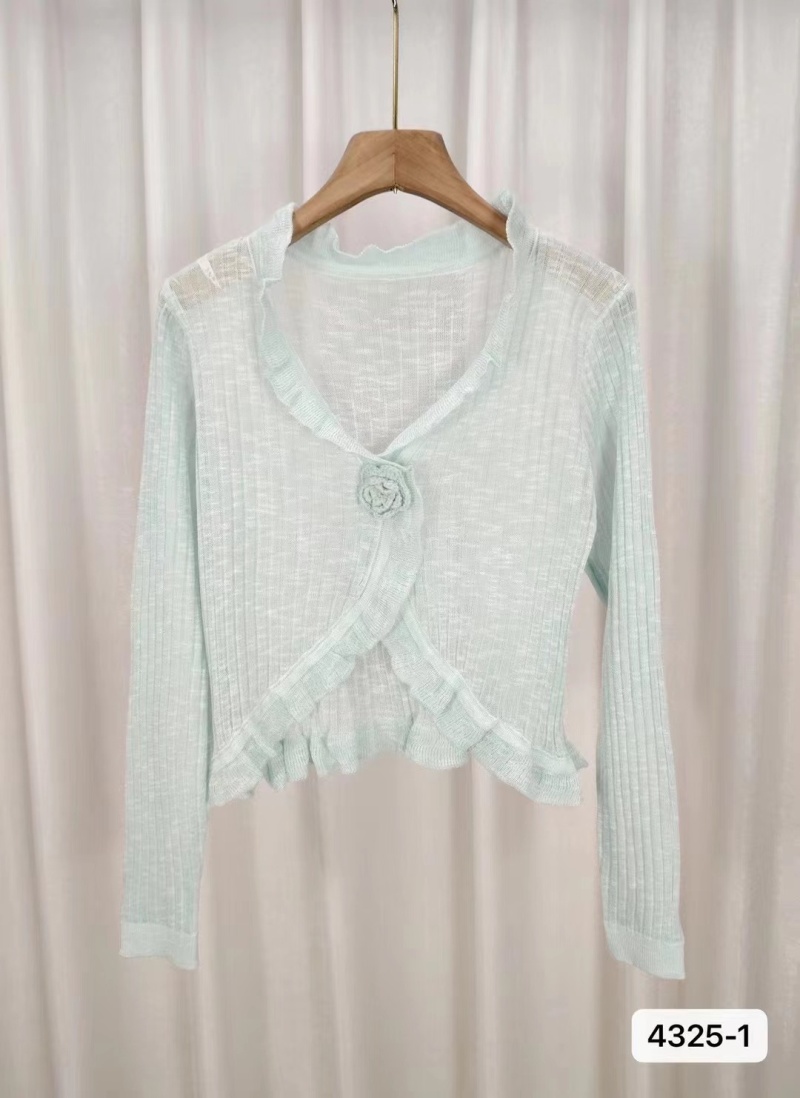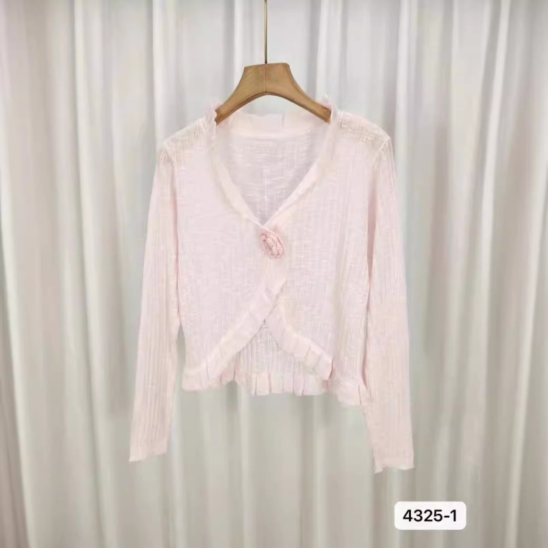 木耳边花朵冰丝防晒针织开衫女薄款夏季披肩外搭配吊带空调衫上衣