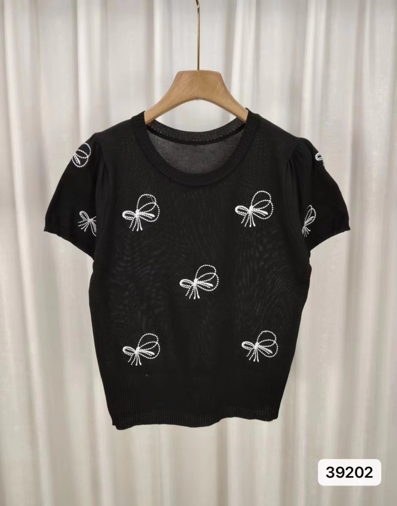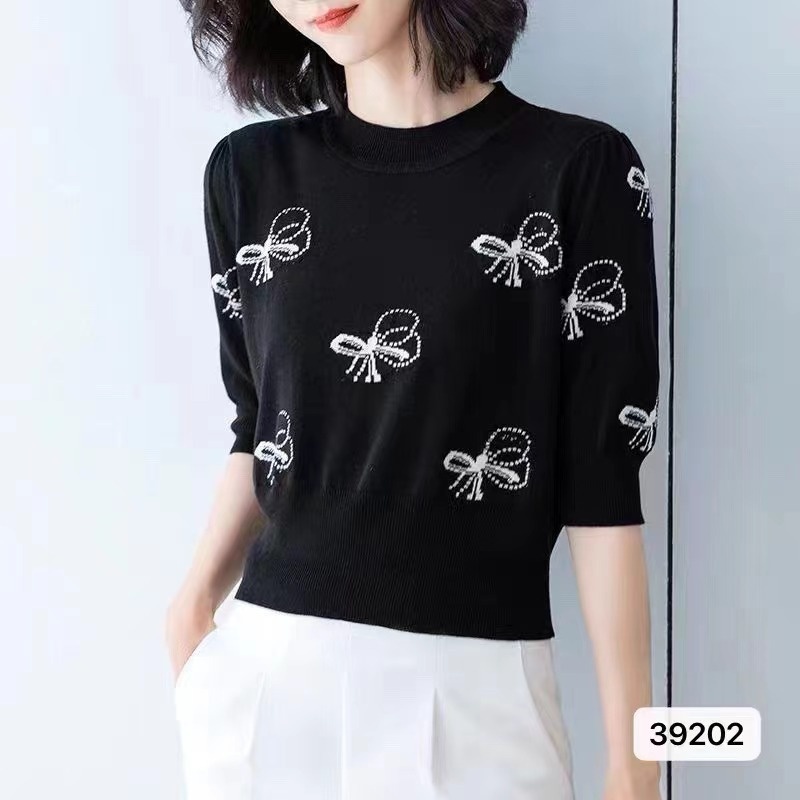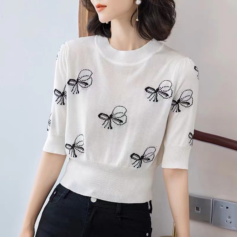 冰丝针织衫女套头短袖高腰短款上衣夏季2024年新款时尚薄款打底衫