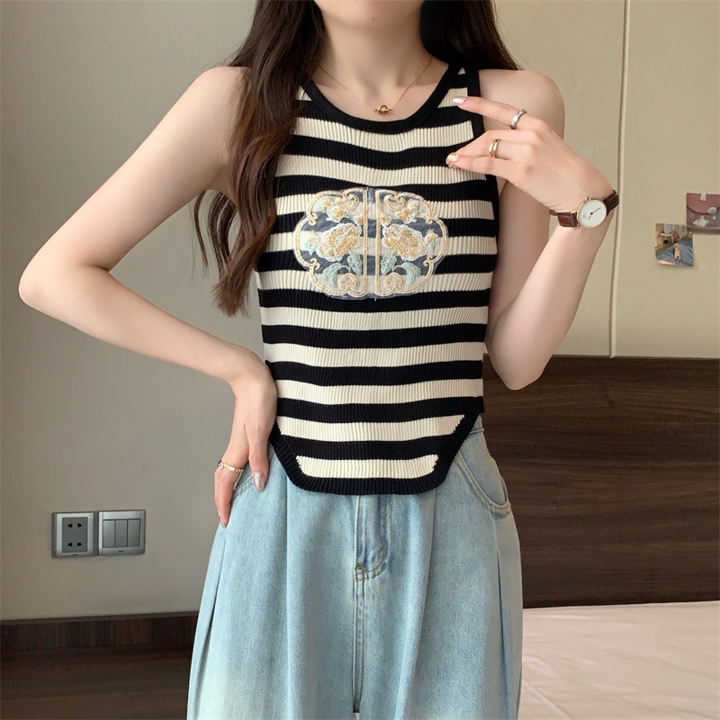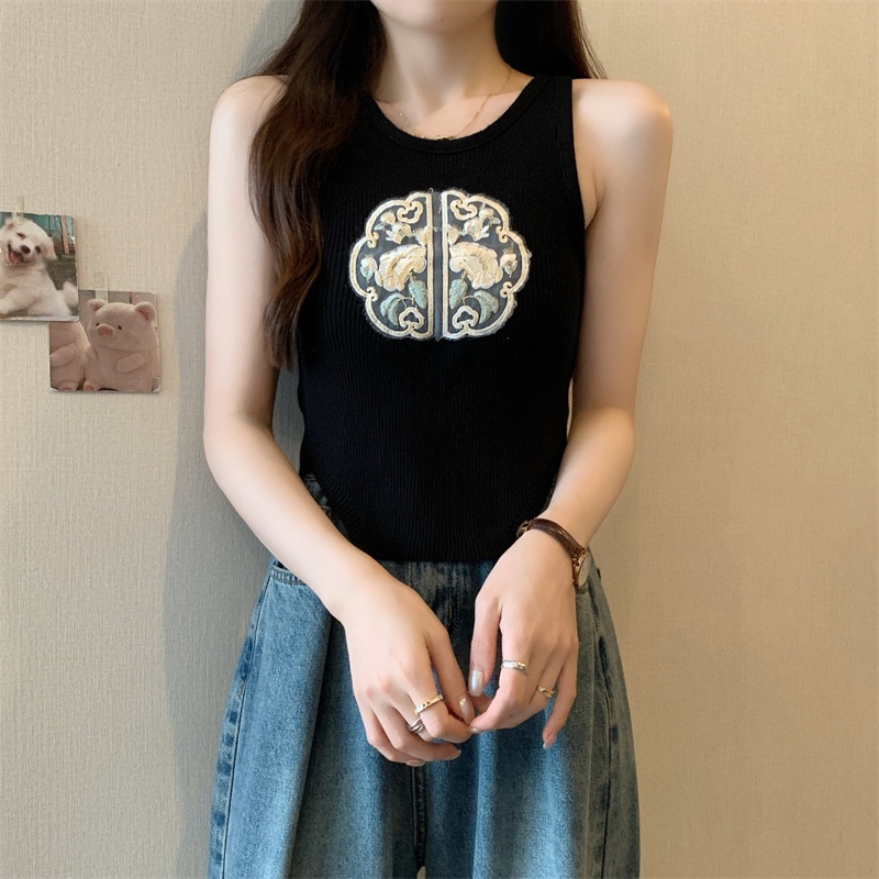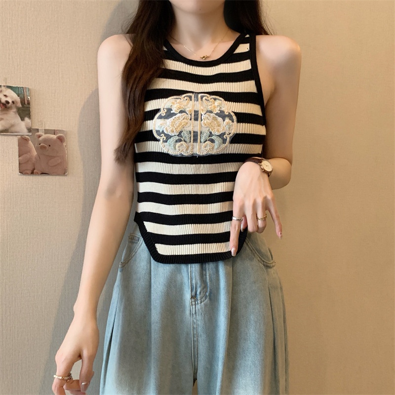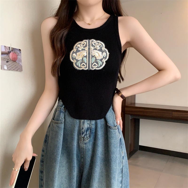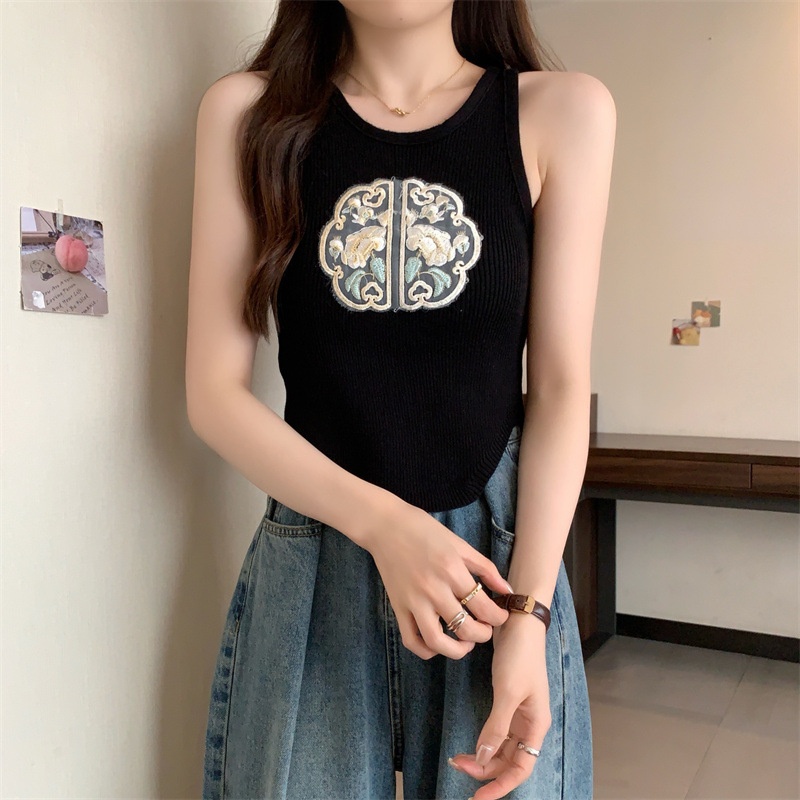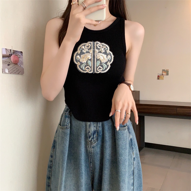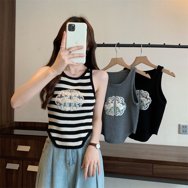 新中式国风针织吊带背心女装春夏季内搭外穿短款辣妹无袖上衣
