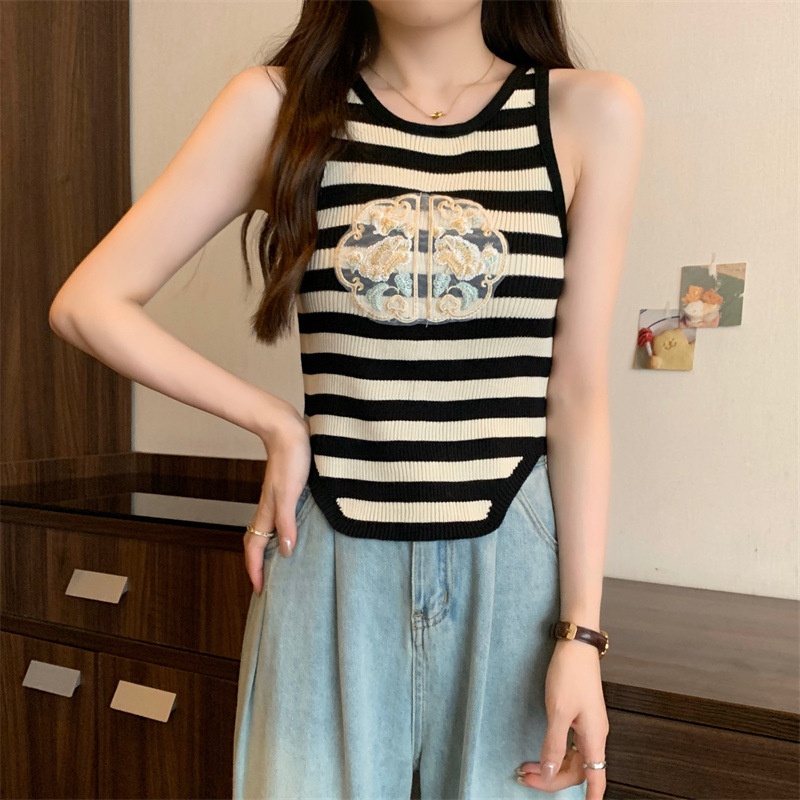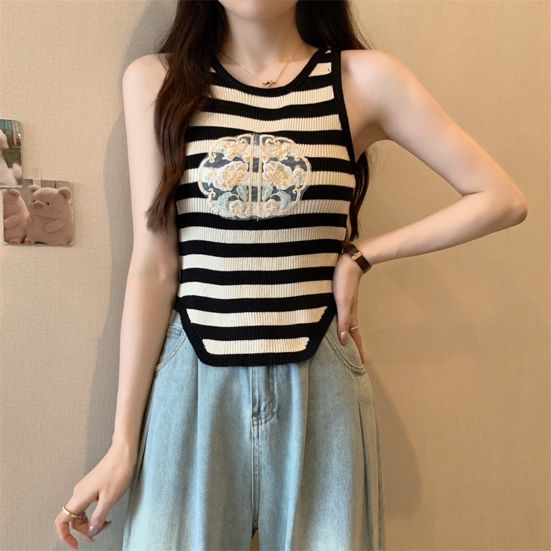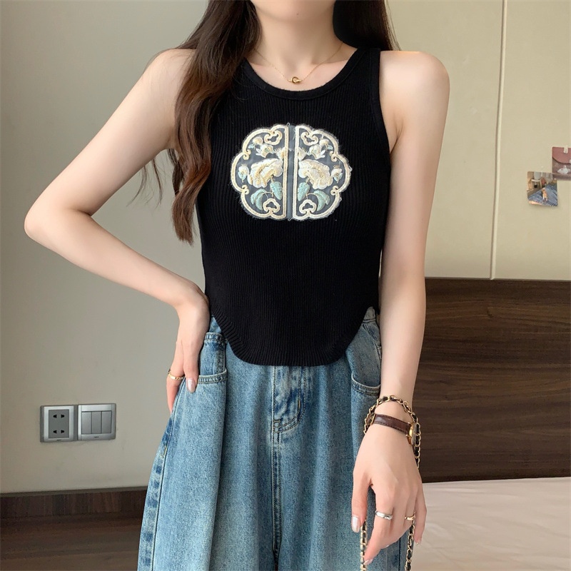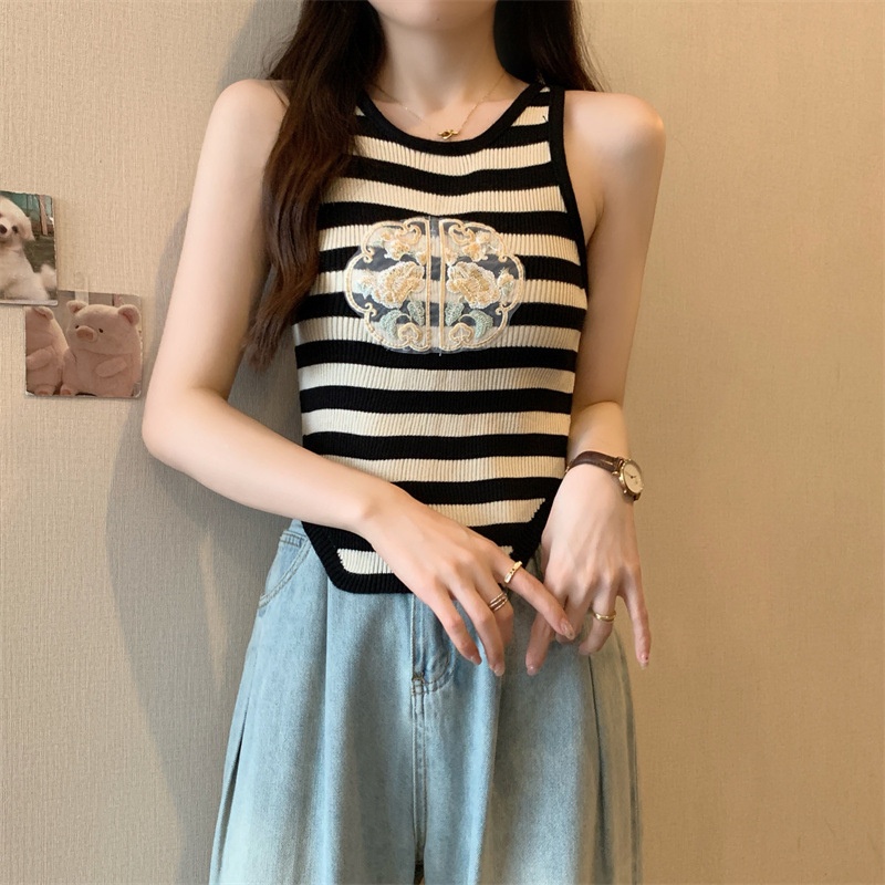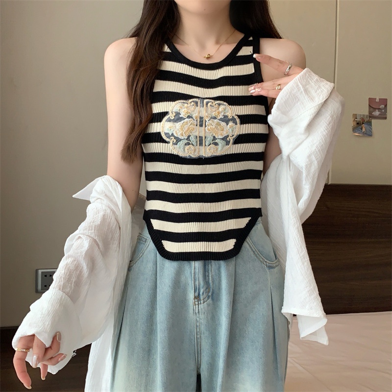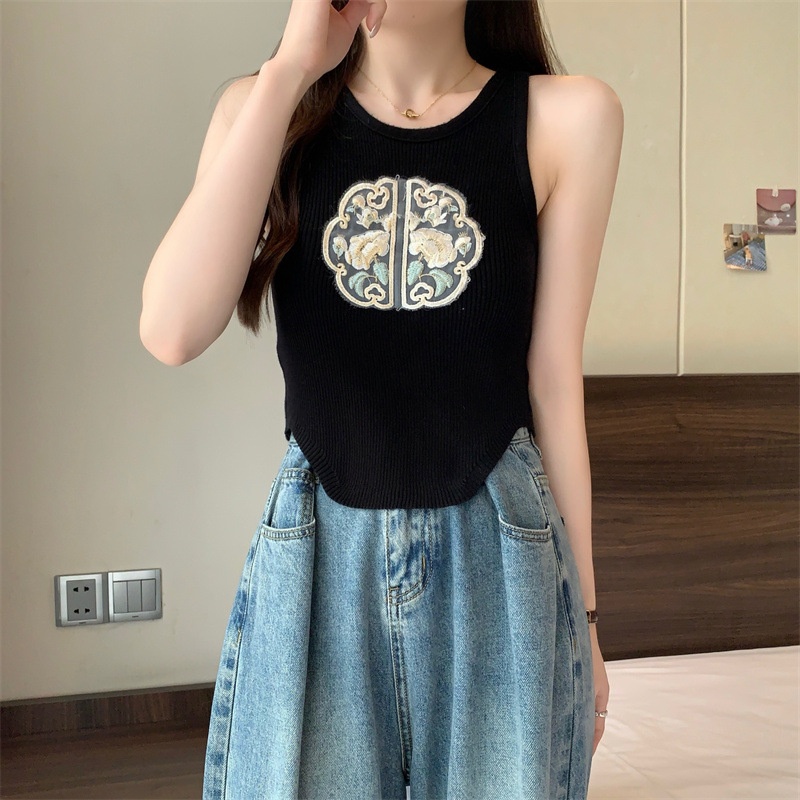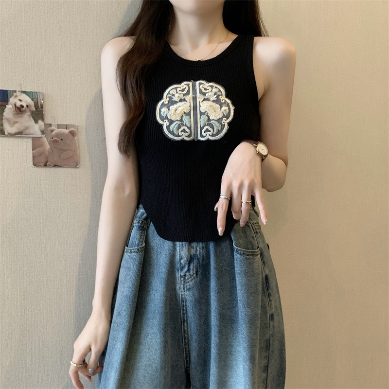 新中式国风针织吊带背心女装春夏季内搭外穿短款辣妹无袖上衣
