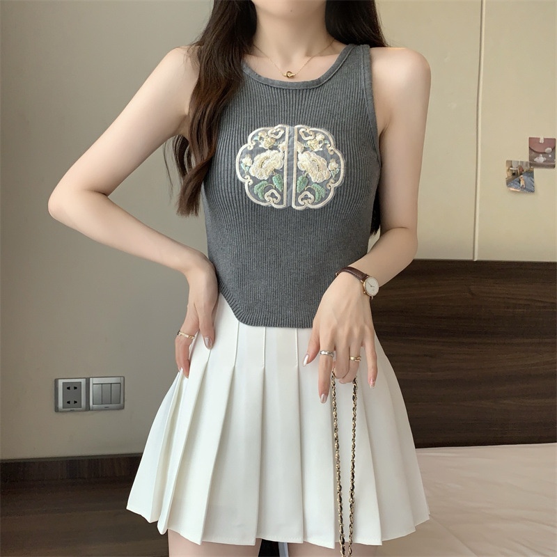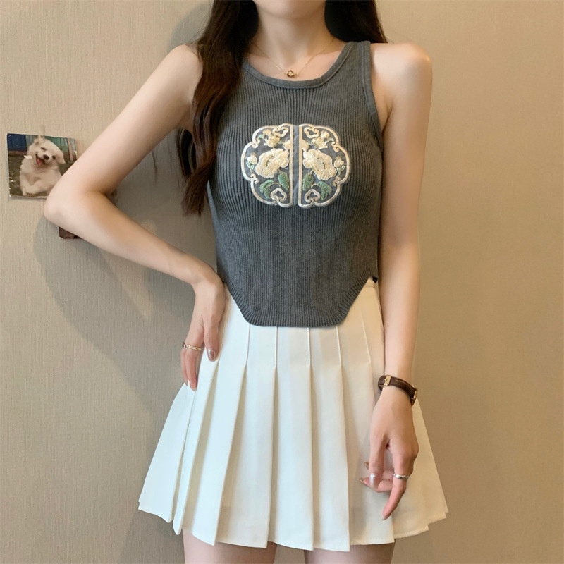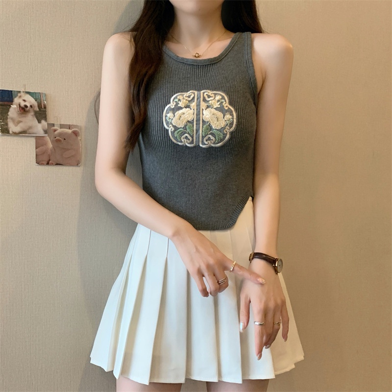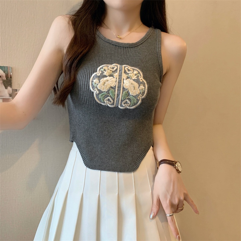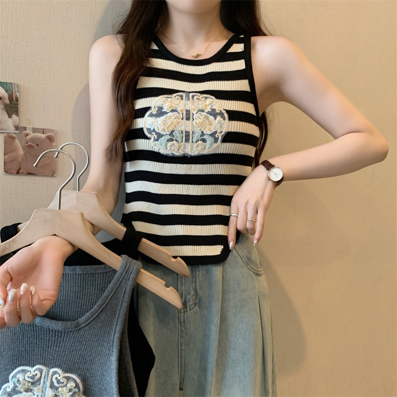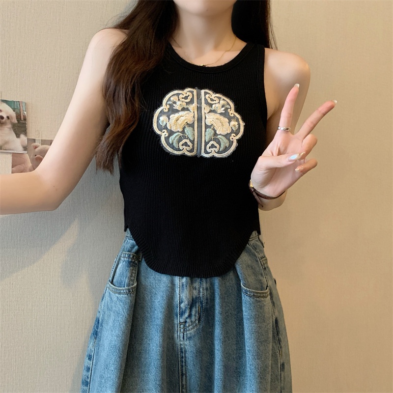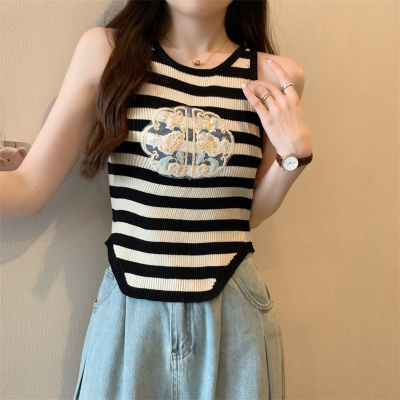 新中式国风针织吊带背心女装春夏季内搭外穿短款辣妹无袖上衣
