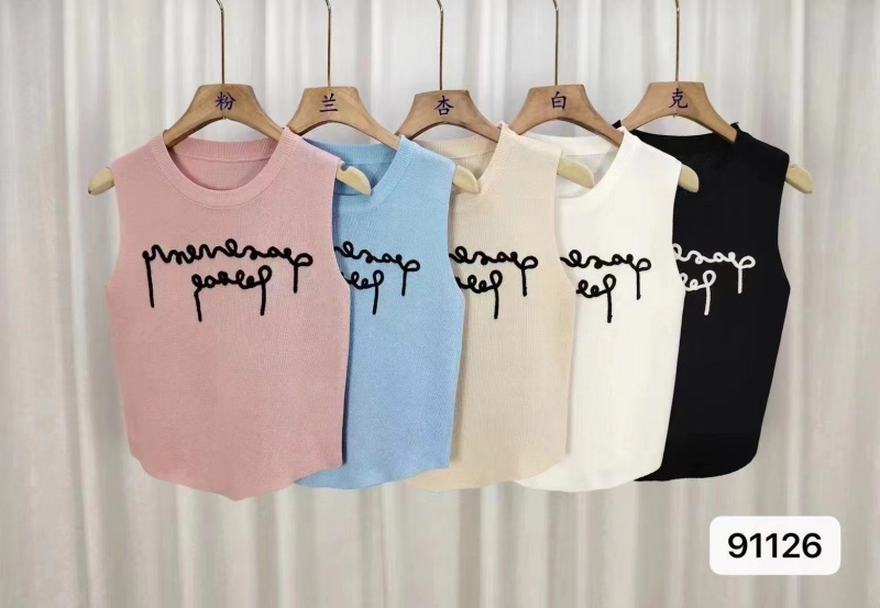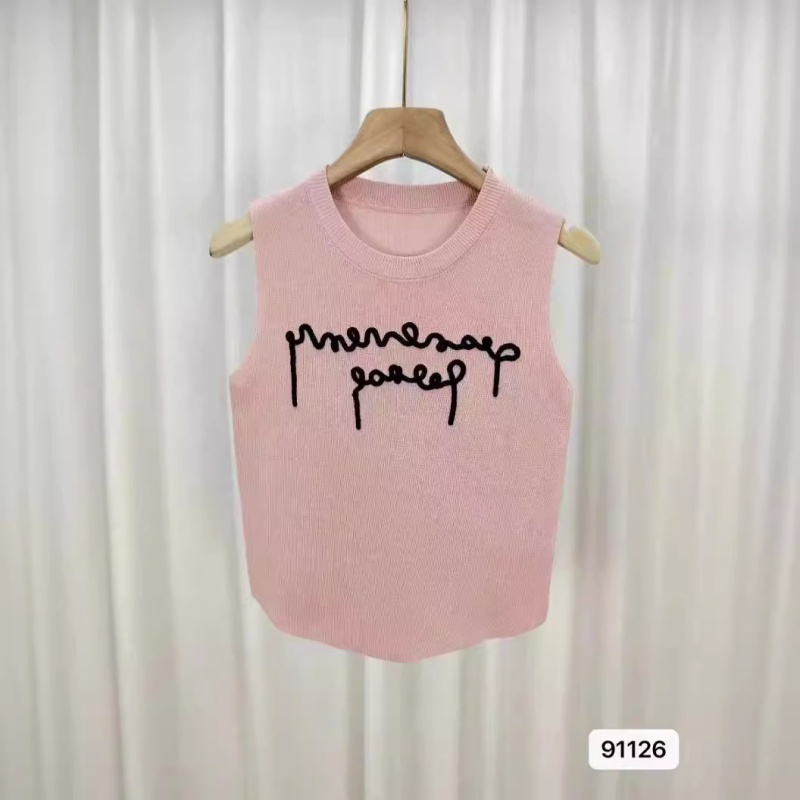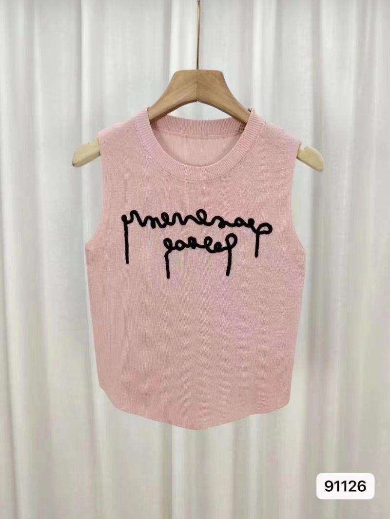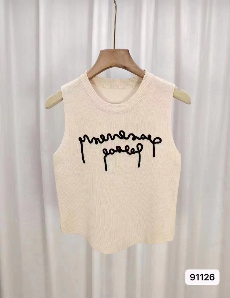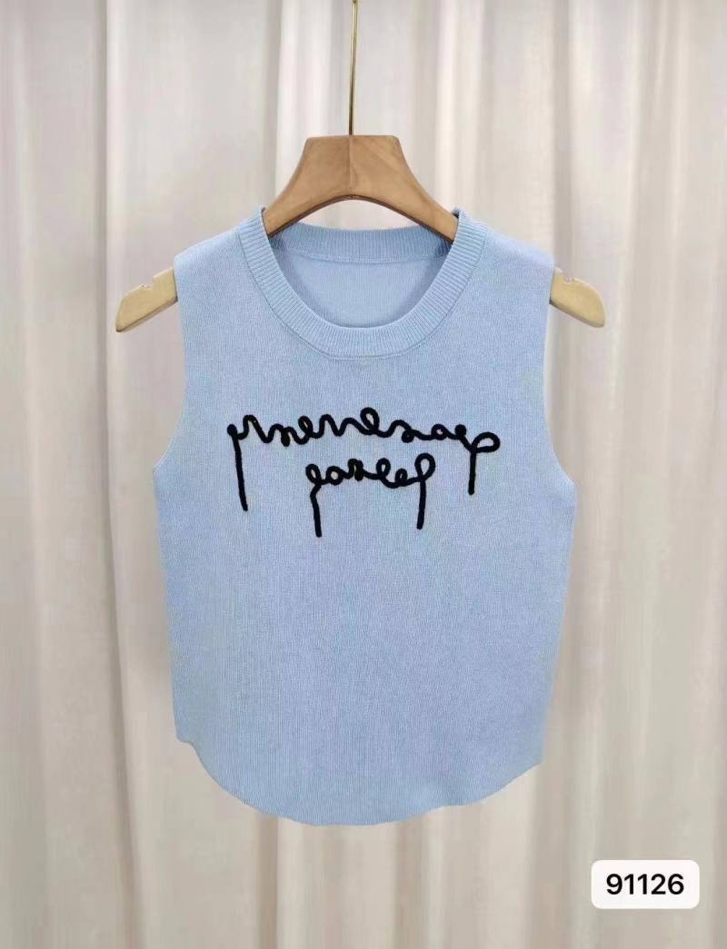 2024夏季新款时尚简约立体字母绣花弧形背心