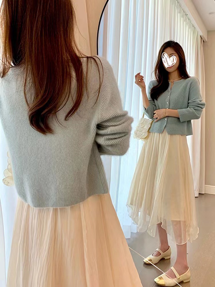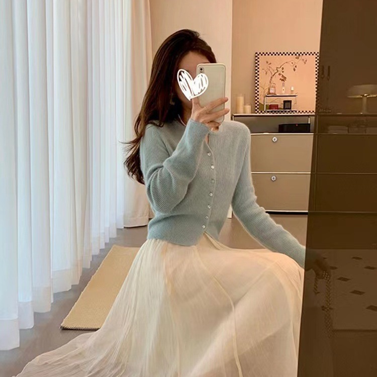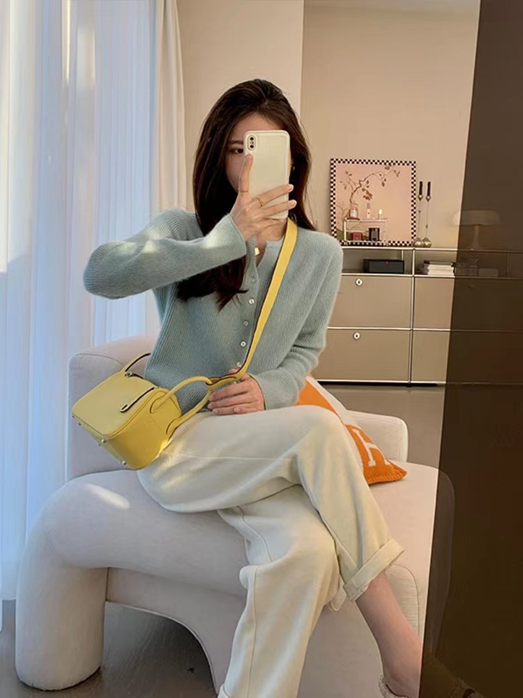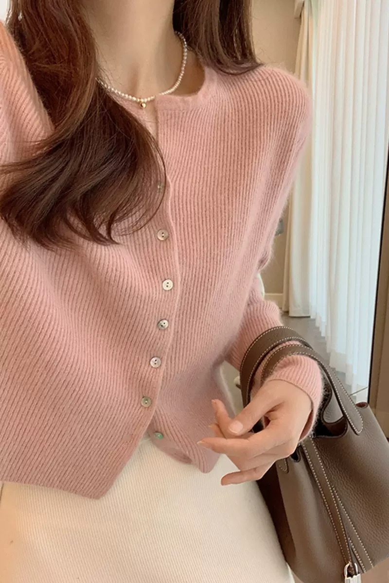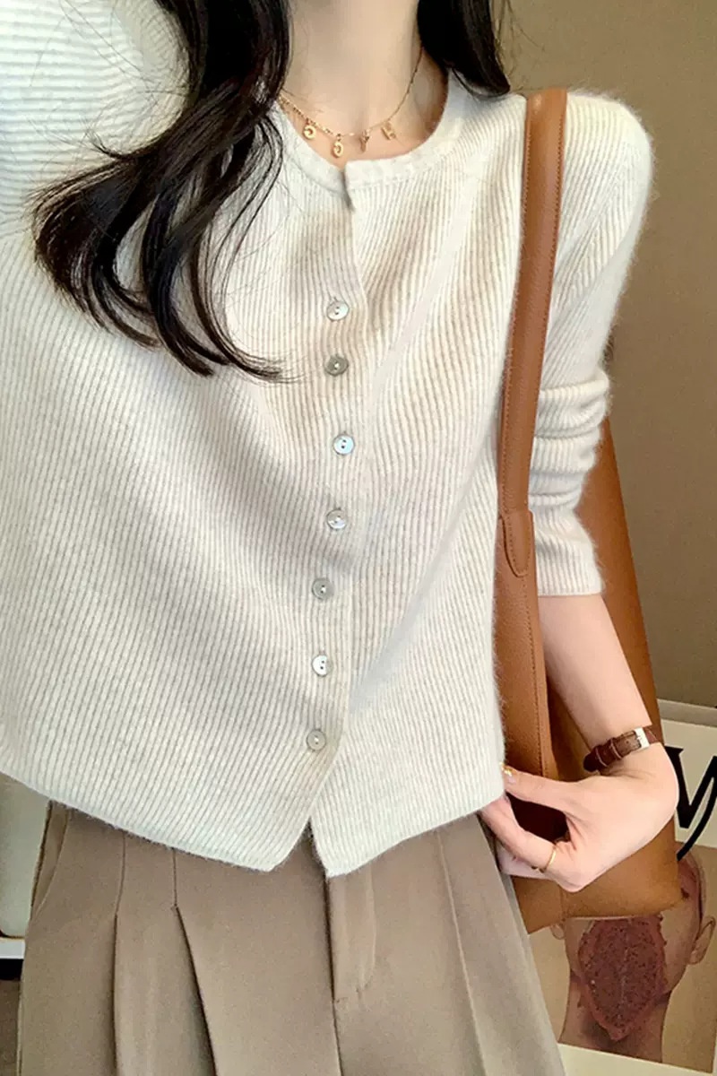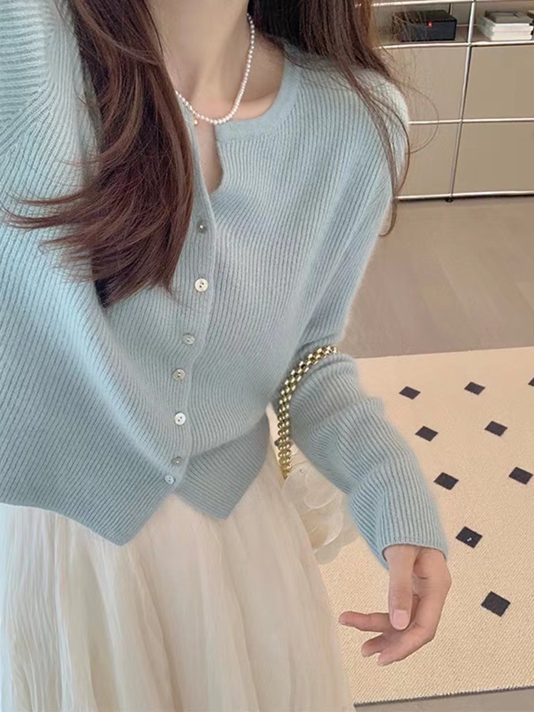 秋冬短款法式奶系温柔高级感气质坑条针织开衫女毛衣外套上衣薄款