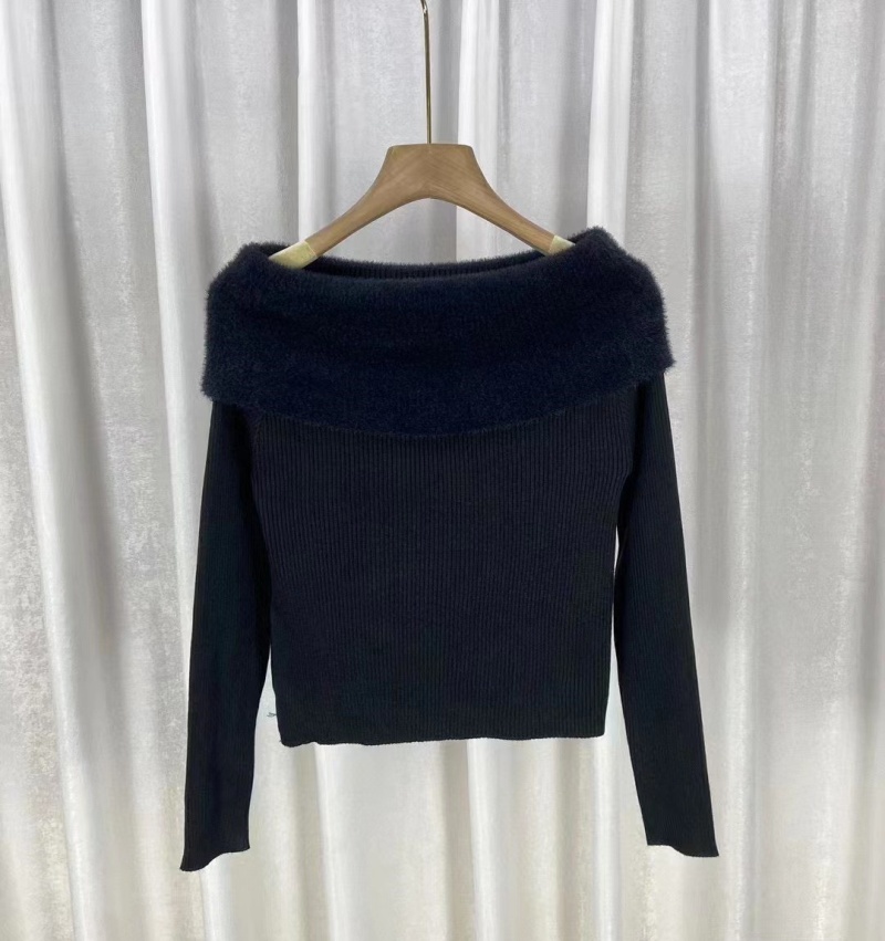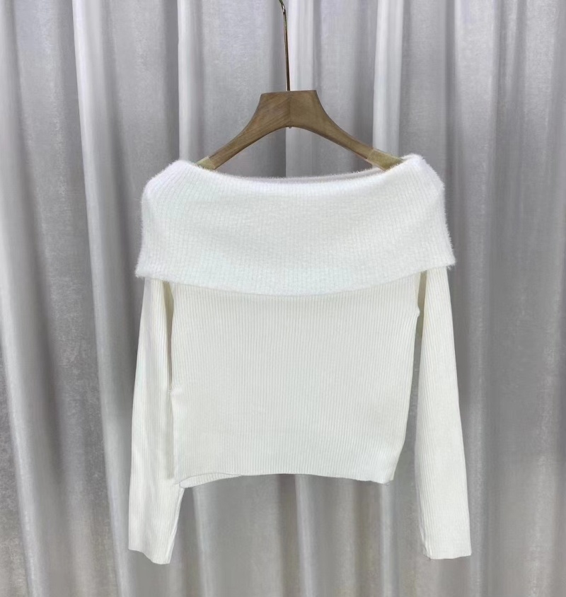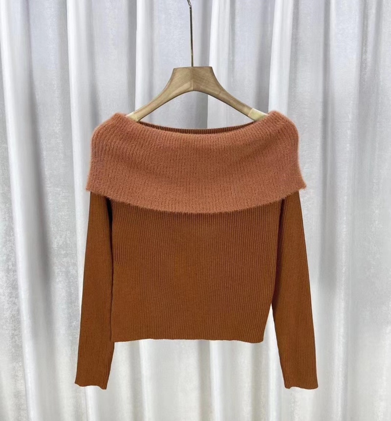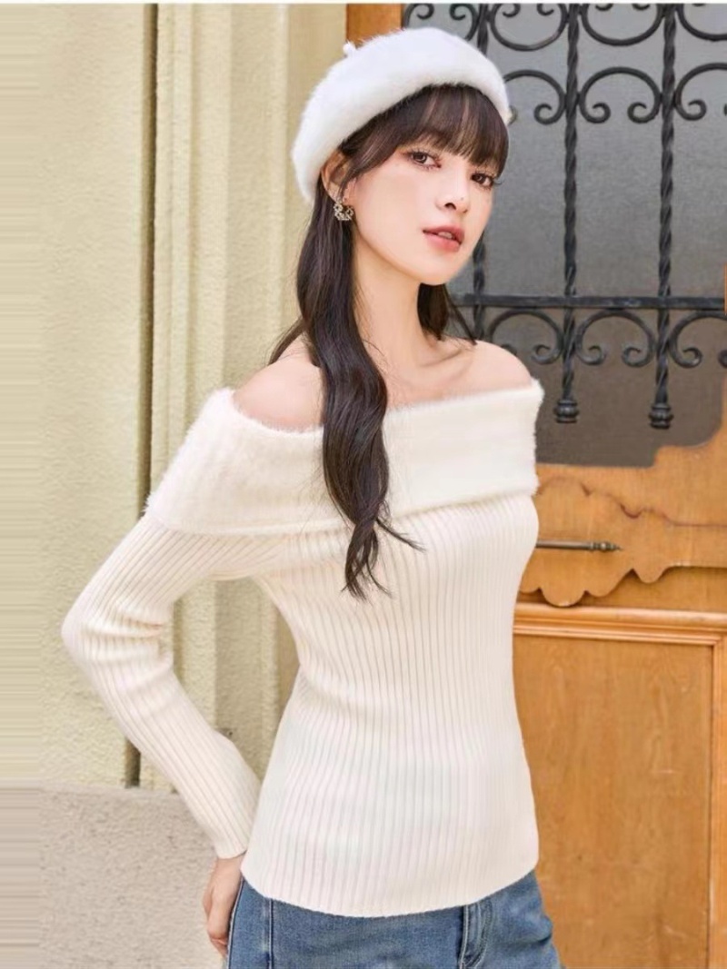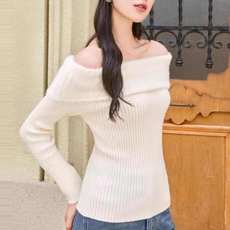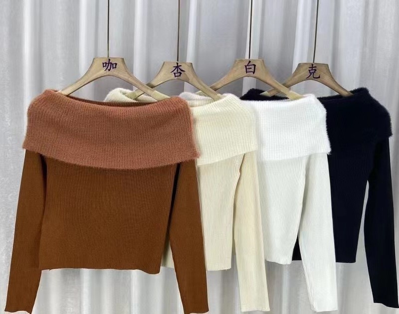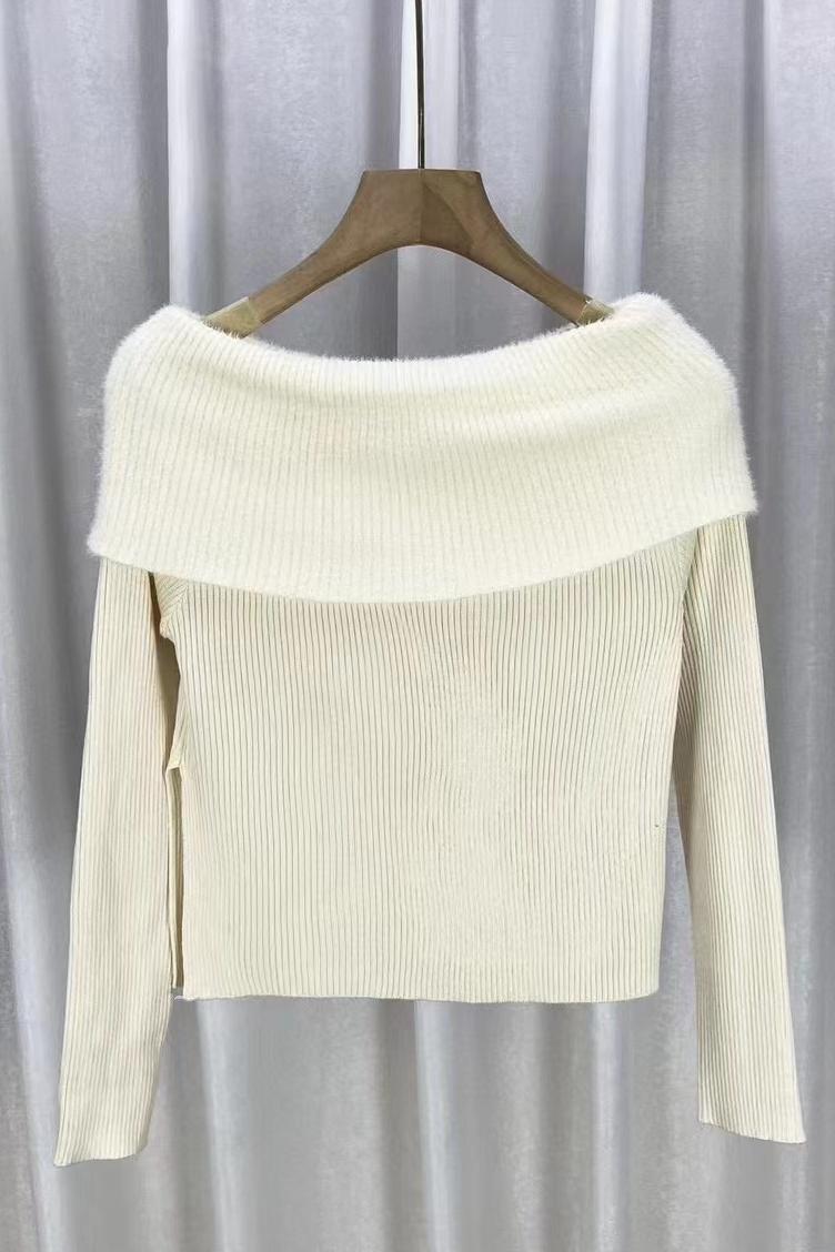 2023秋冬新款性感风短款露肩高级感针织衫女一字肩毛衣修身上衣女