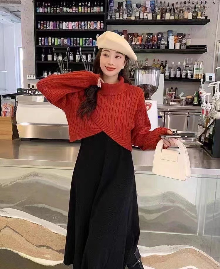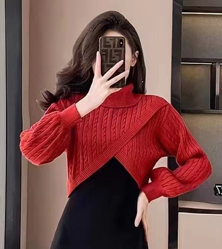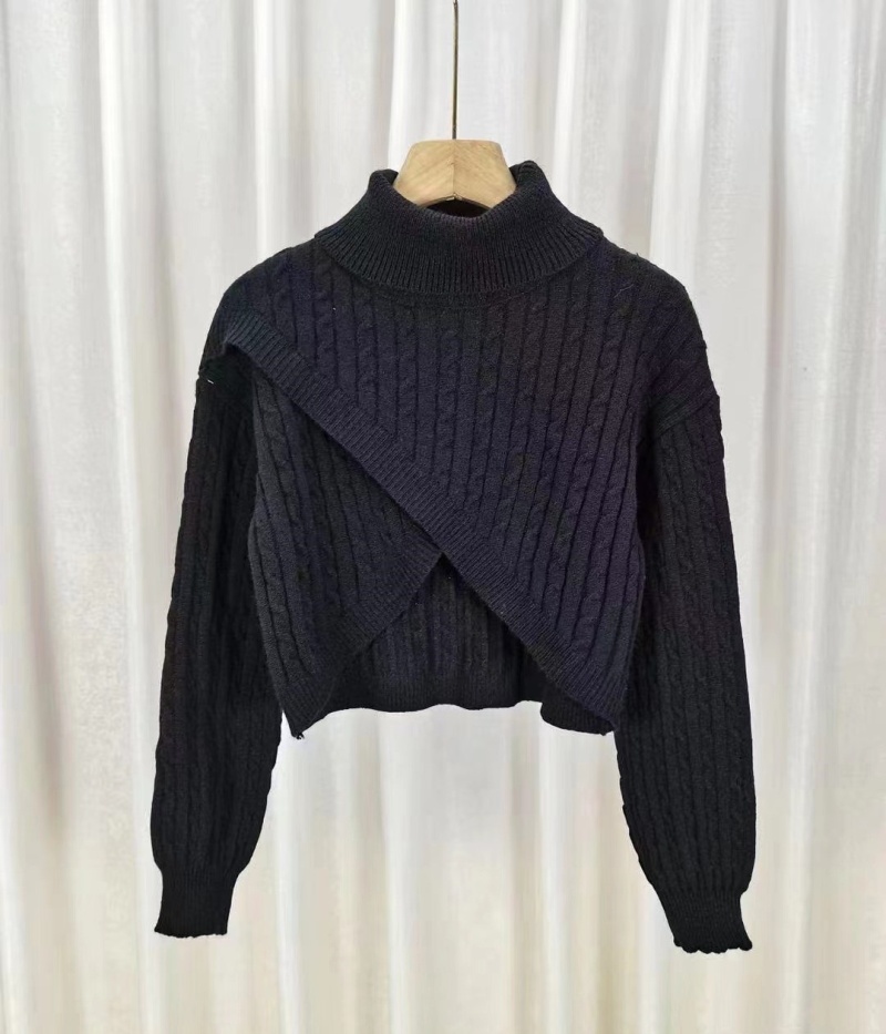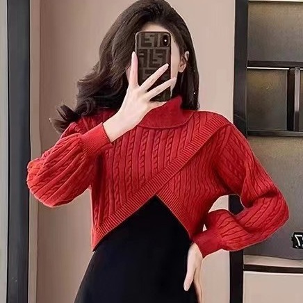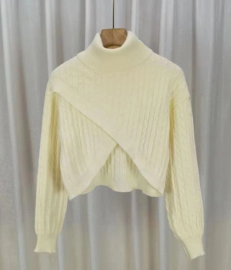 韩版气质高领麻花纹针织衫2023秋冬新款氛围感高腰长袖百搭上衣女