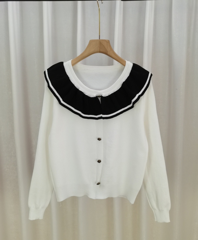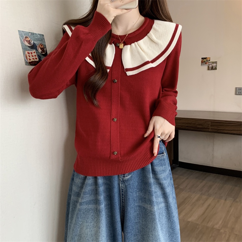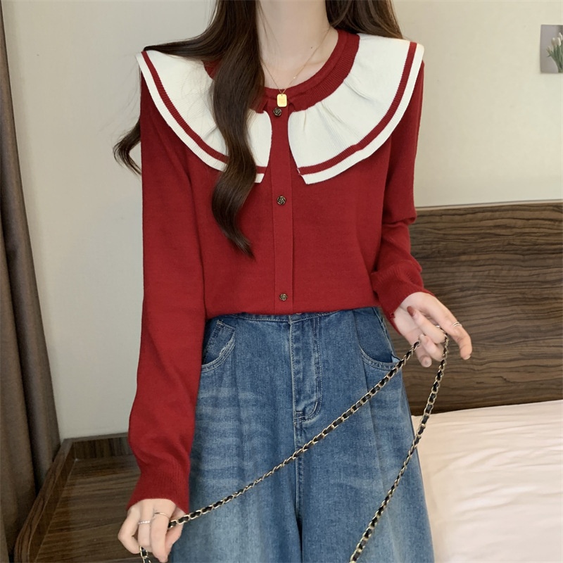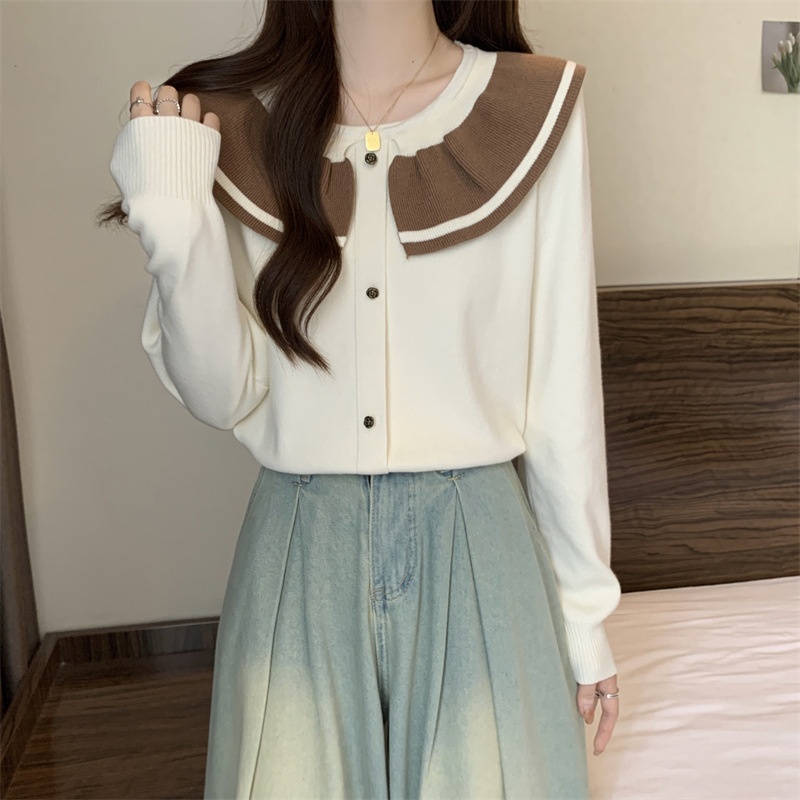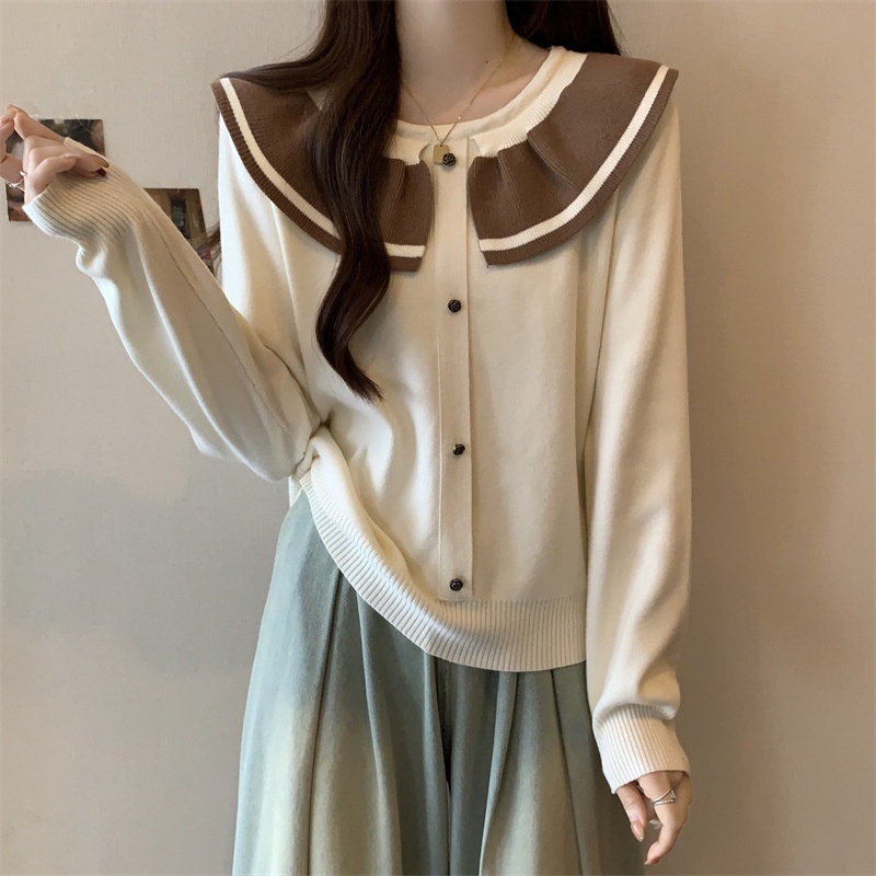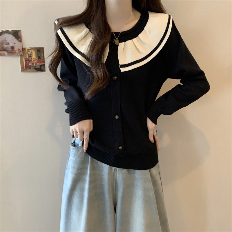 小香风温柔娃娃领女装高级感百搭宽松圆领撞色针织衫内搭外穿毛衣