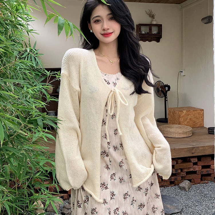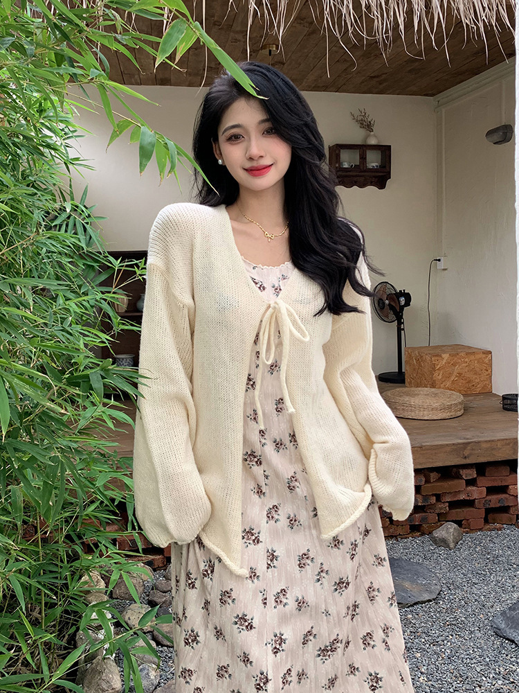 2023秋冬新款温柔风软糯针织开衫毛衣外套女设计感系带气质上衣女