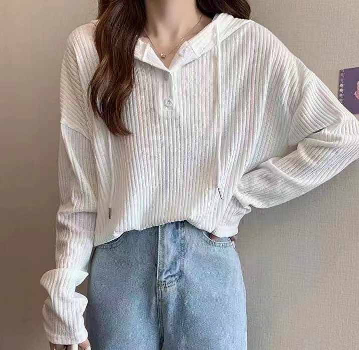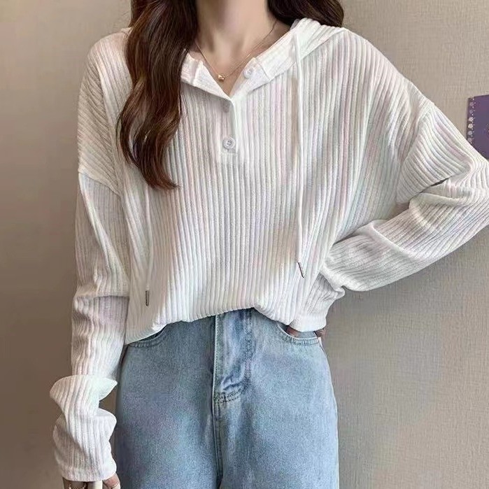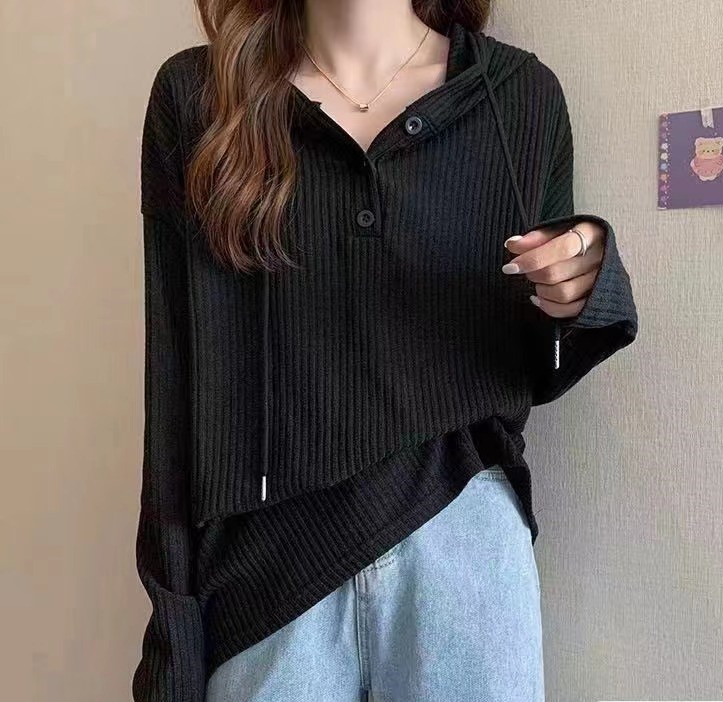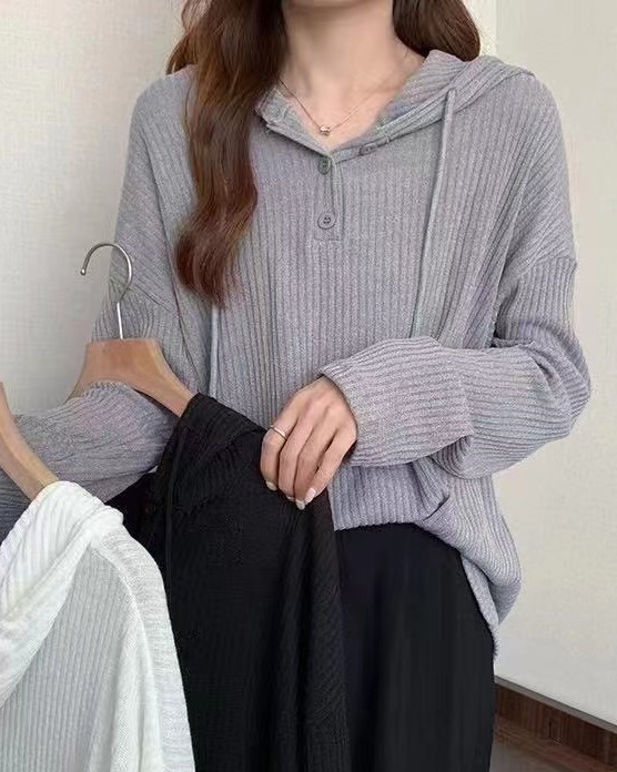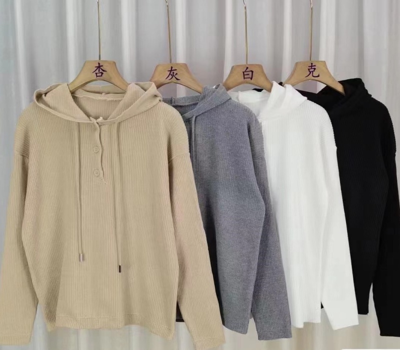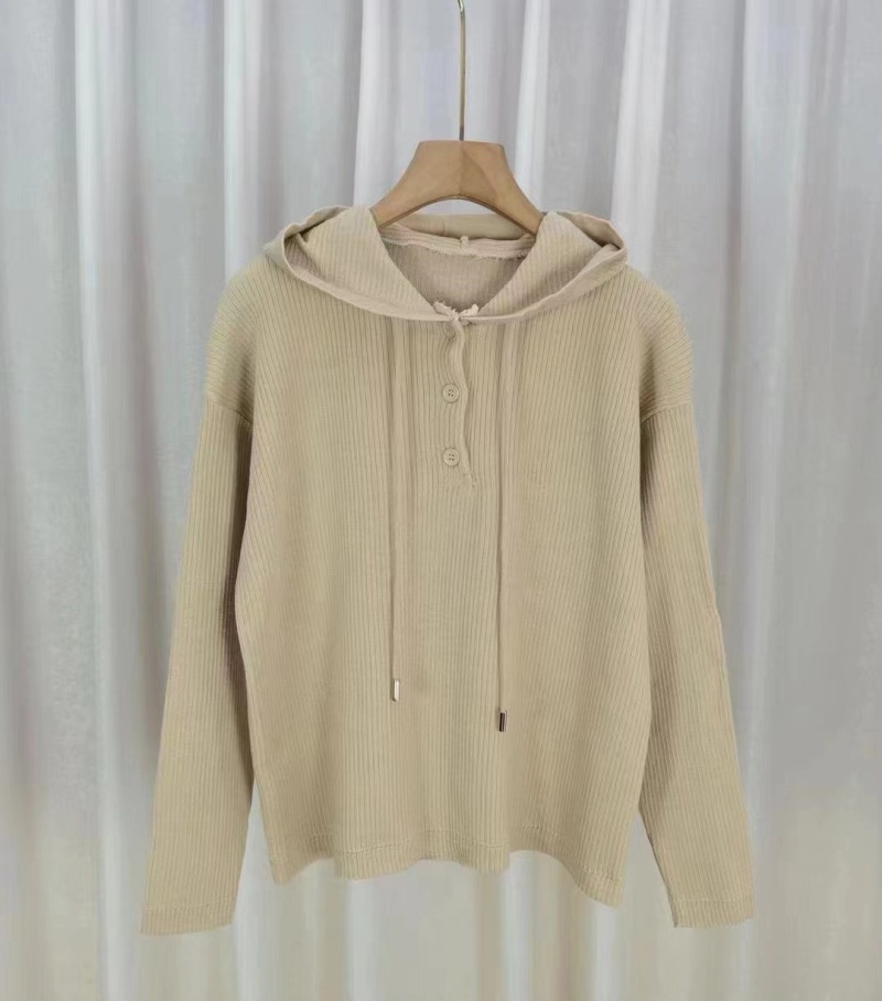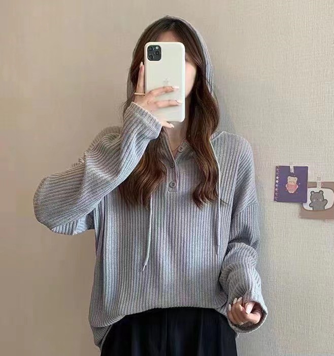 2023秋冬新款休闲风简约连帽针织衫韩版宽松显瘦纯色长袖上衣女
