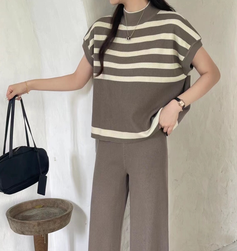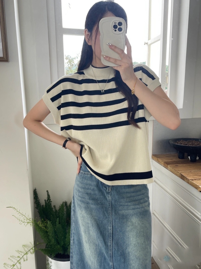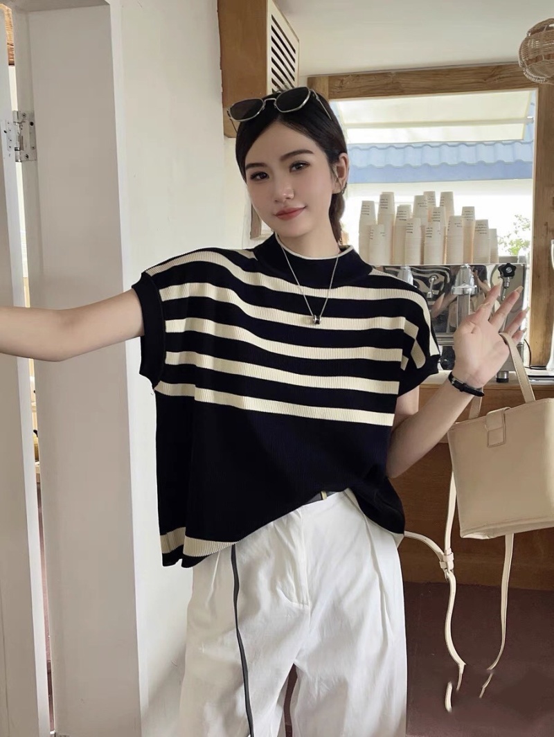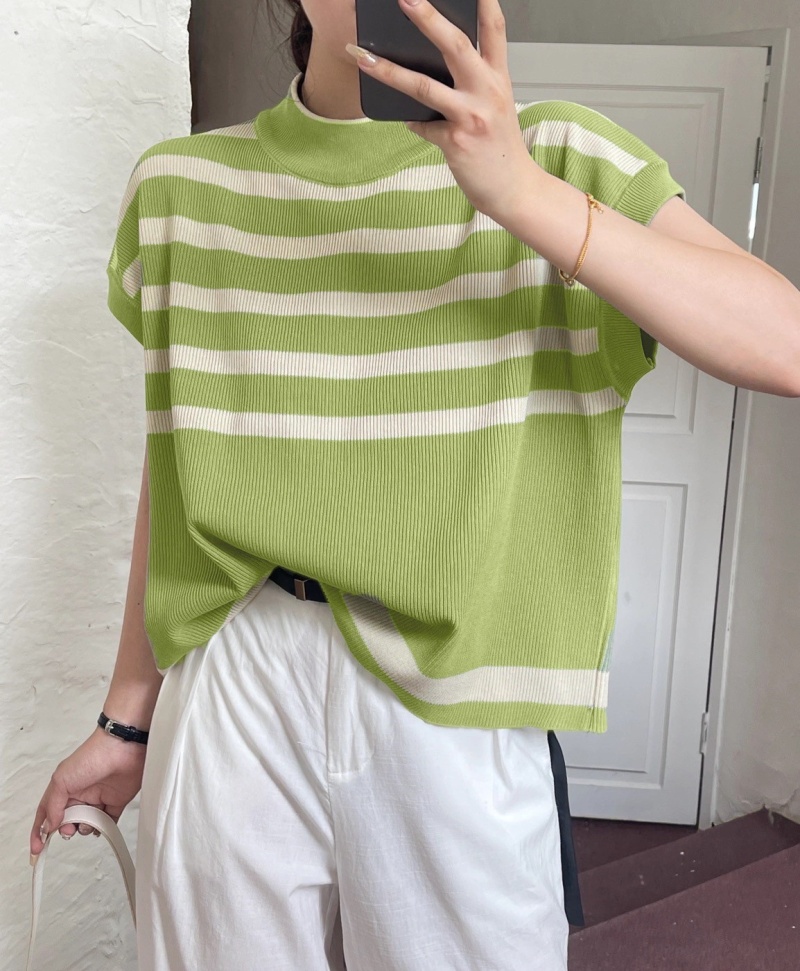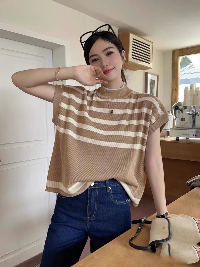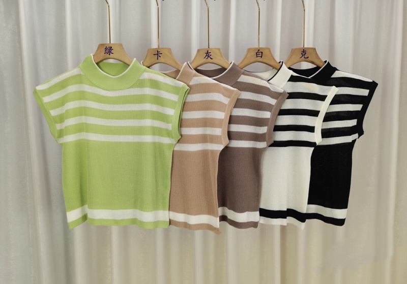 2023新款设计感撞色条纹针织衫韩系时髦微透宽松无袖百搭上衣女