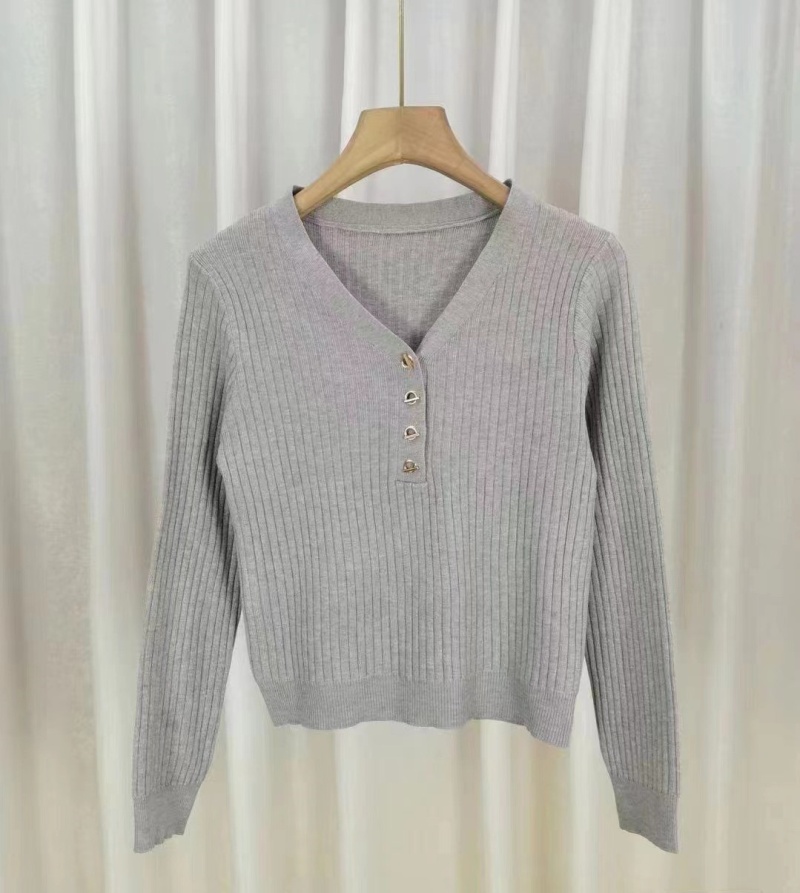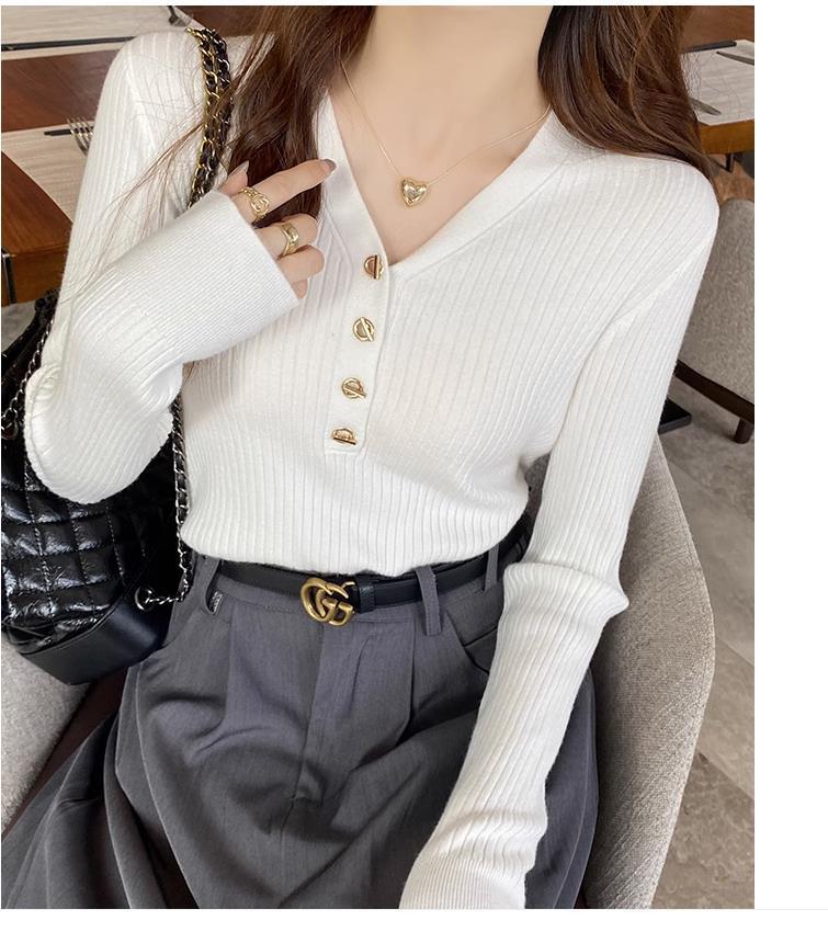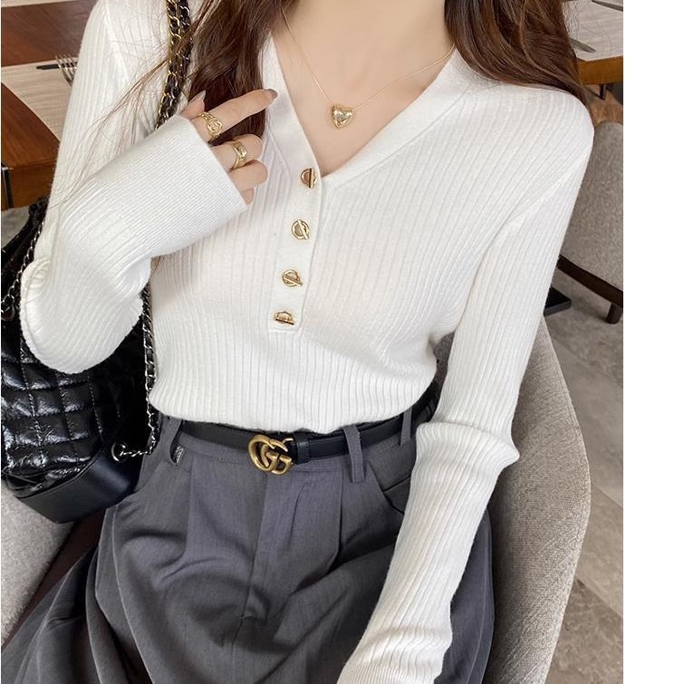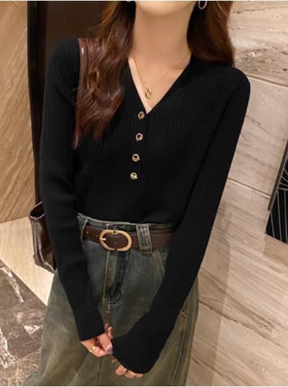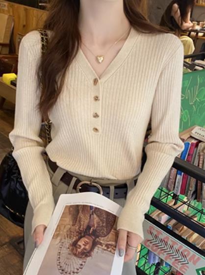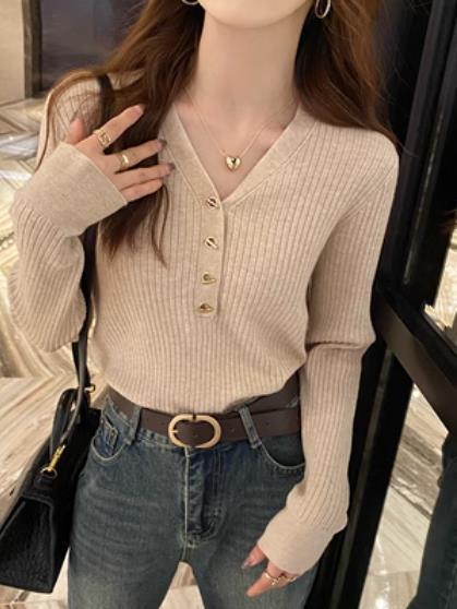 2023秋冬新款小香风v领针织衫女内搭软糯毛衣修身显瘦长袖上衣女