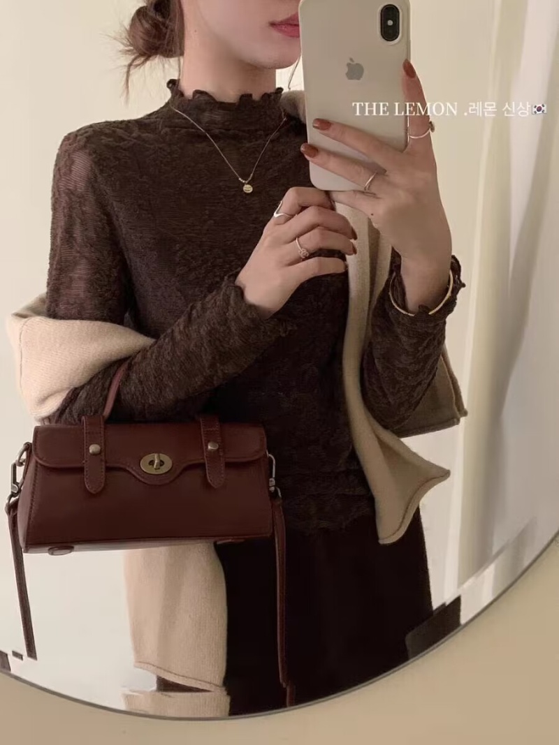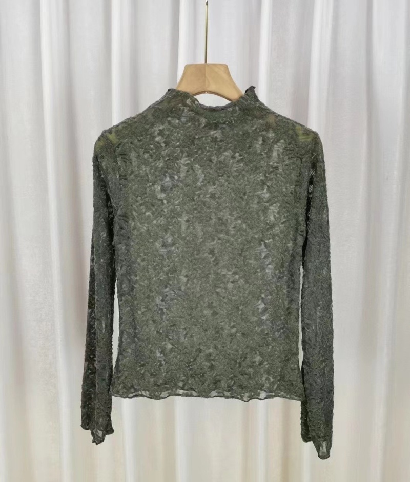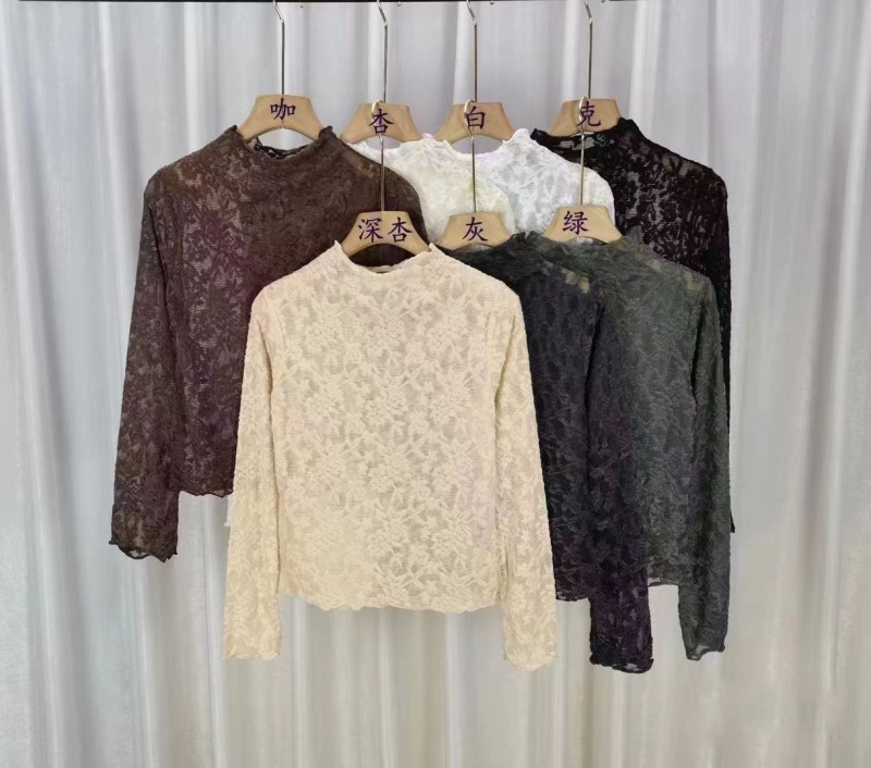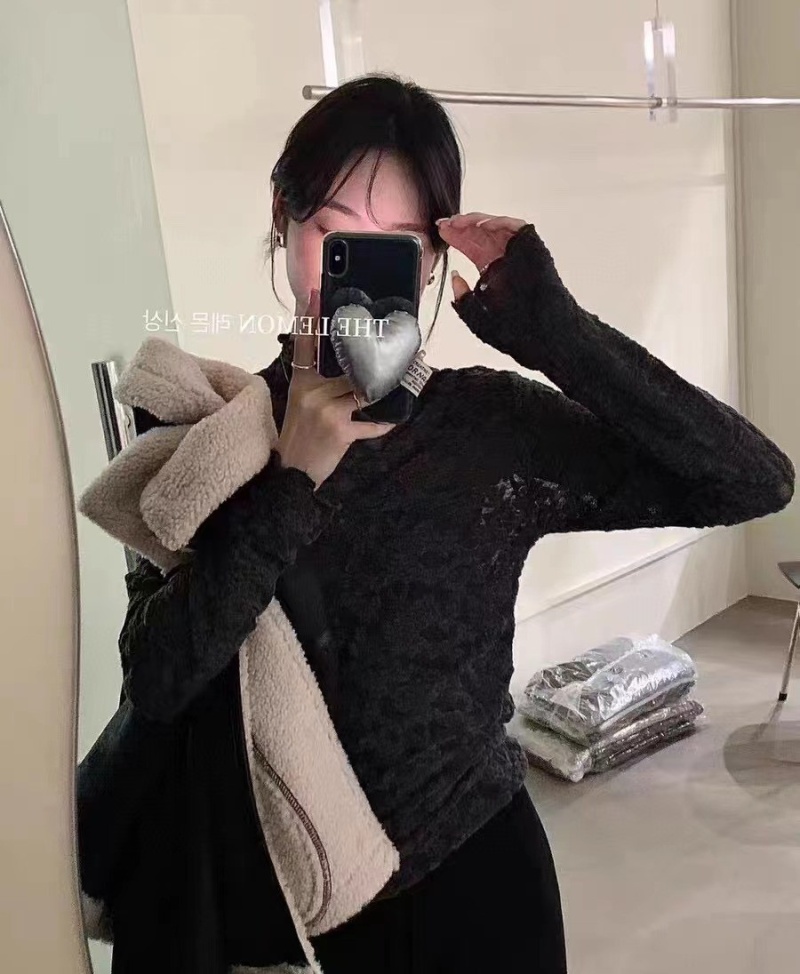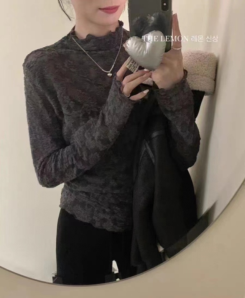 秋冬新款韩版温柔甜美风木耳边半高领内搭蕾丝花针织衫长袖上衣女