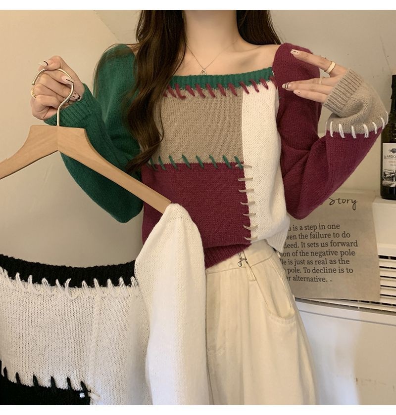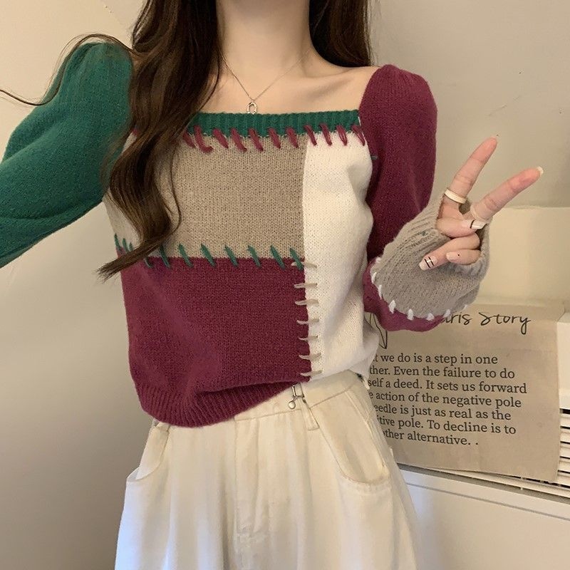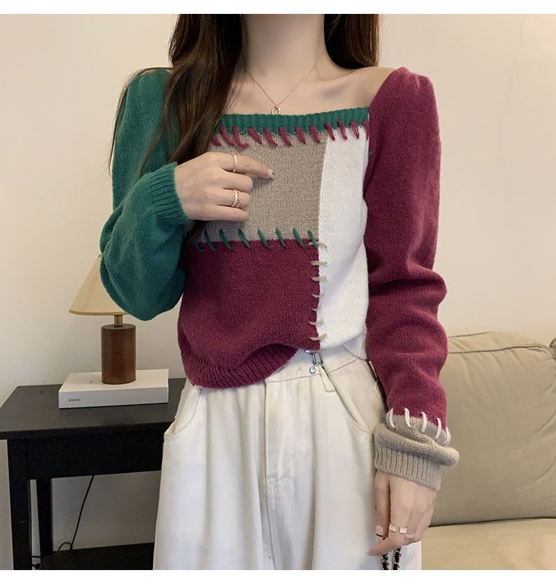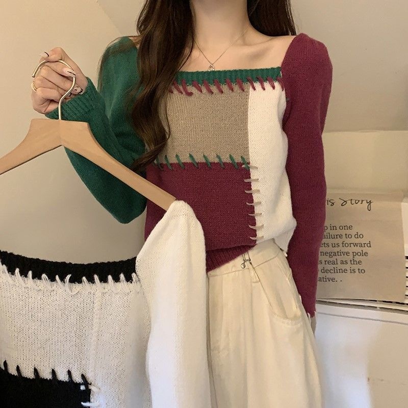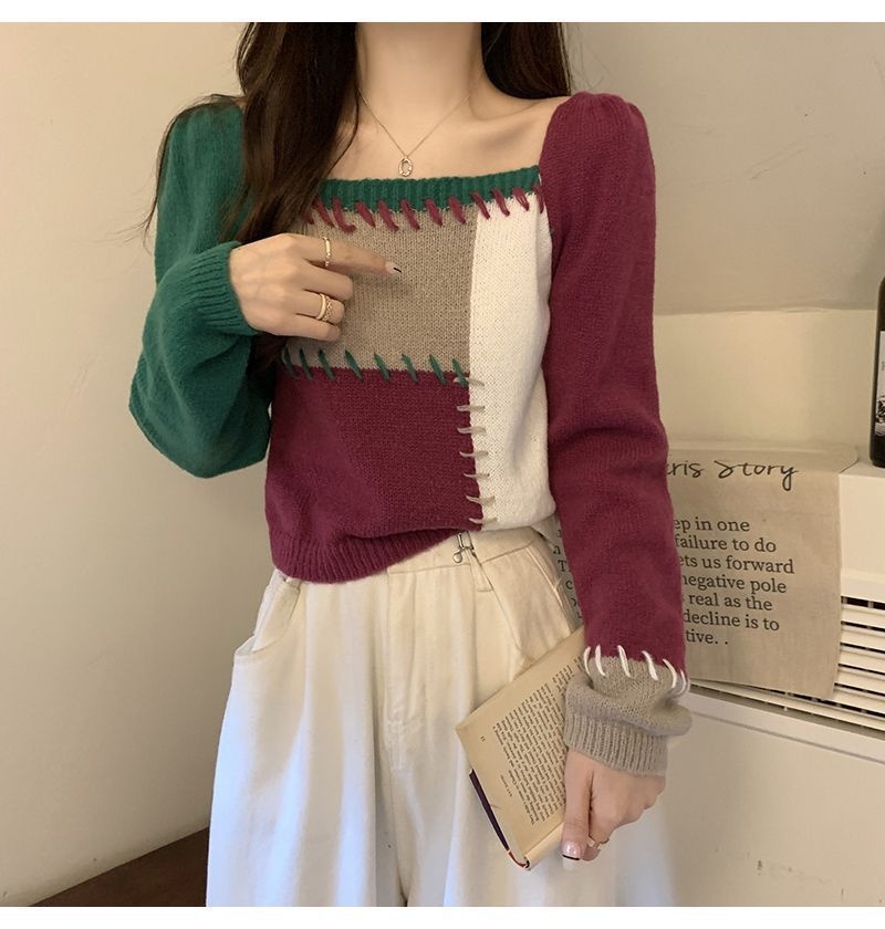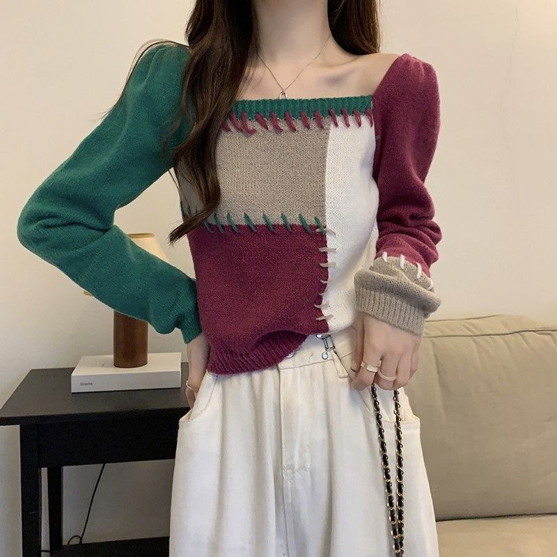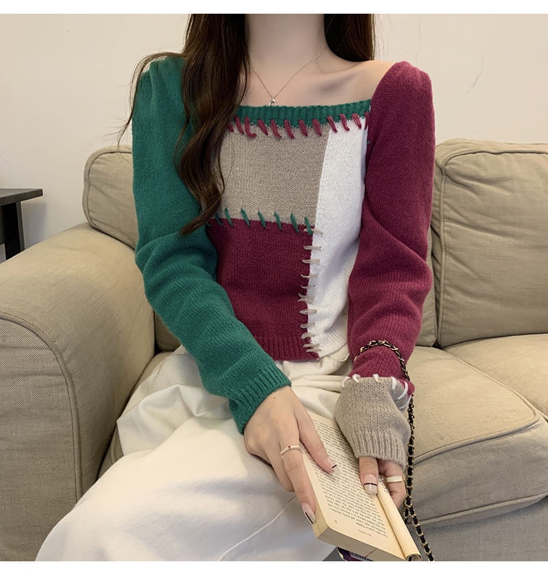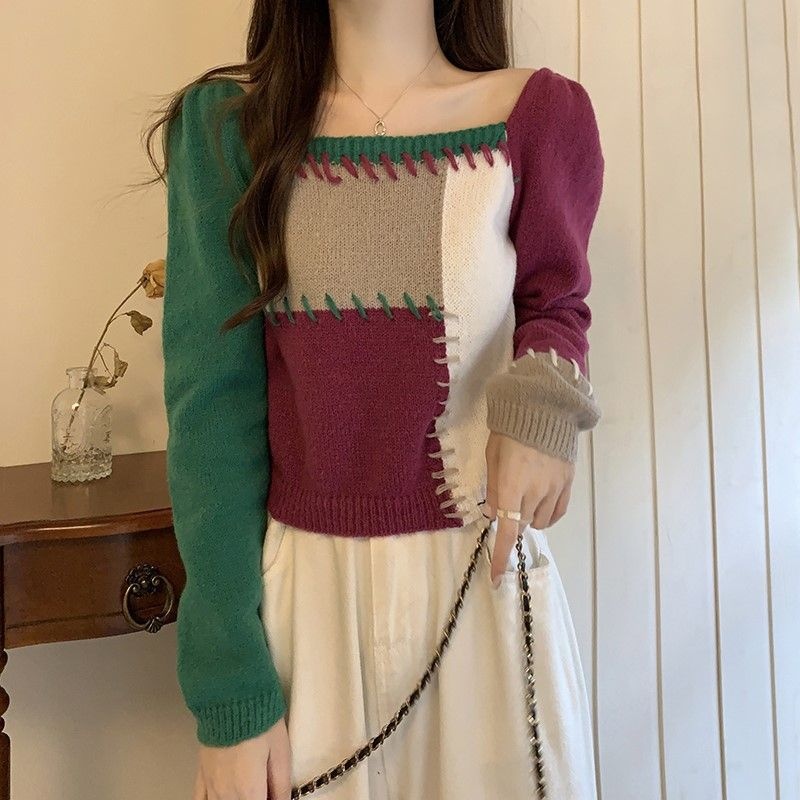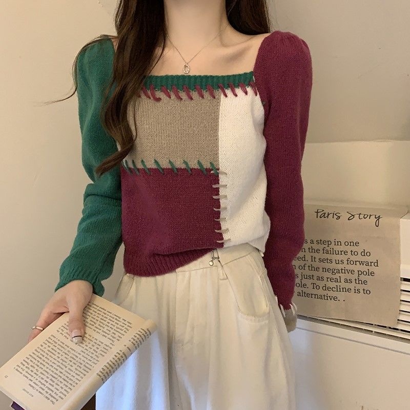2023春秋辣妹设计感修身显瘦内搭小个子打底上衣方领长袖针织衫女