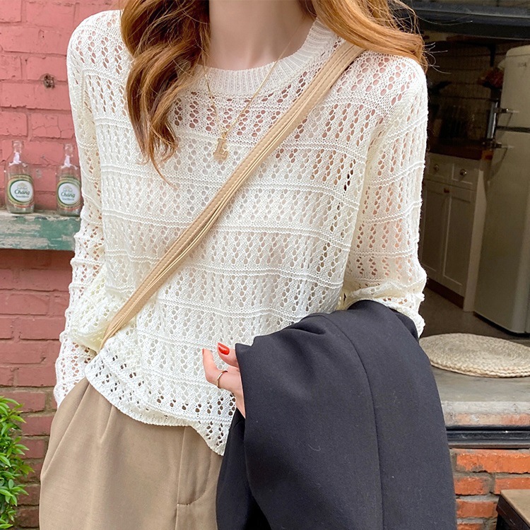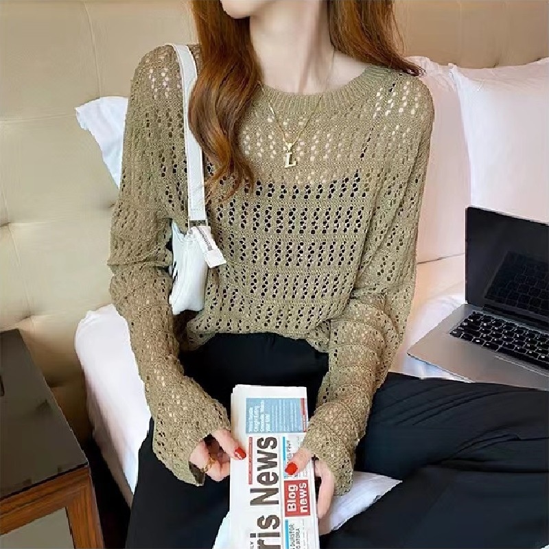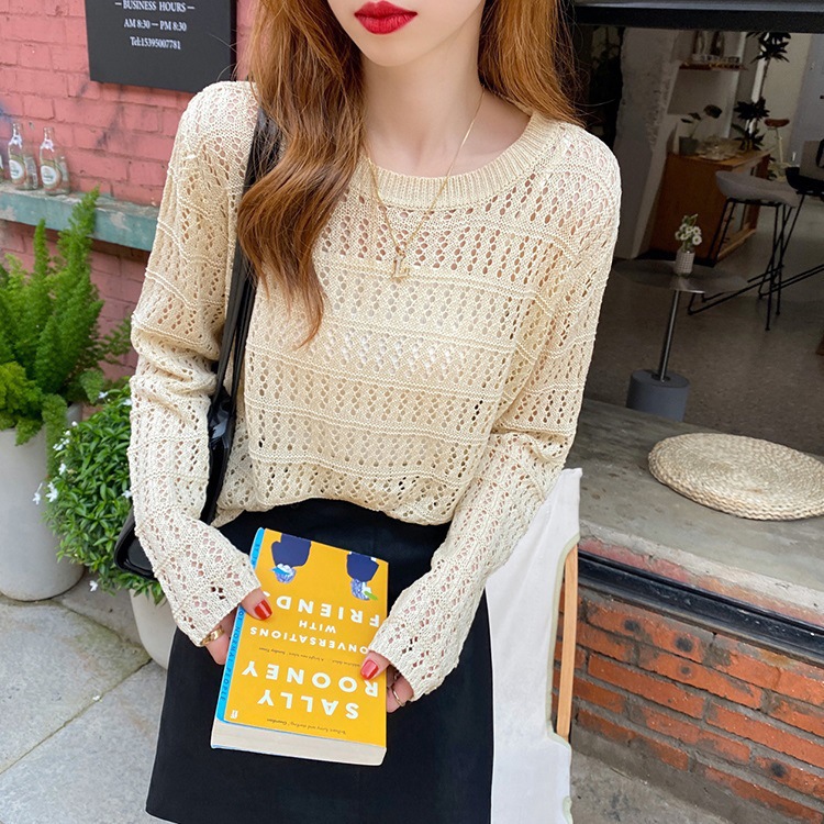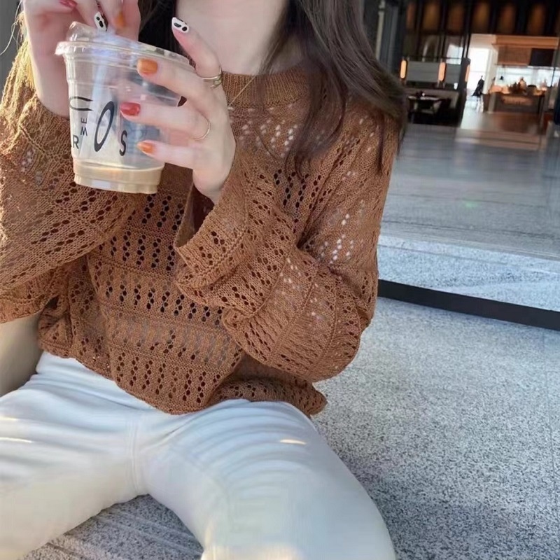 2023春秋慵懒宽松显瘦外穿毛衣长袖上衣潮薄款打底衫镂空针织衫女