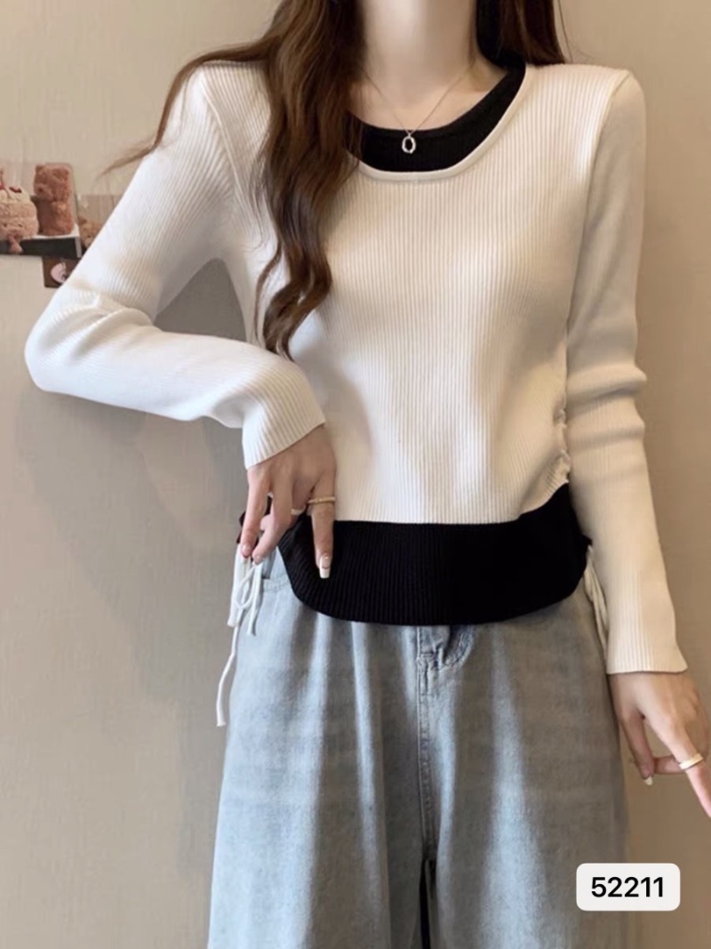 假两件打底长袖针织衫女秋季2023新款韩版设计感小众修身显瘦上衣