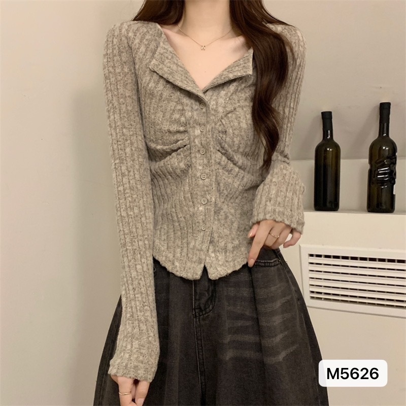 纯欲辣妹V领针织开衫女春秋新款收腰修身遮肉通勤别致长袖上衣ins