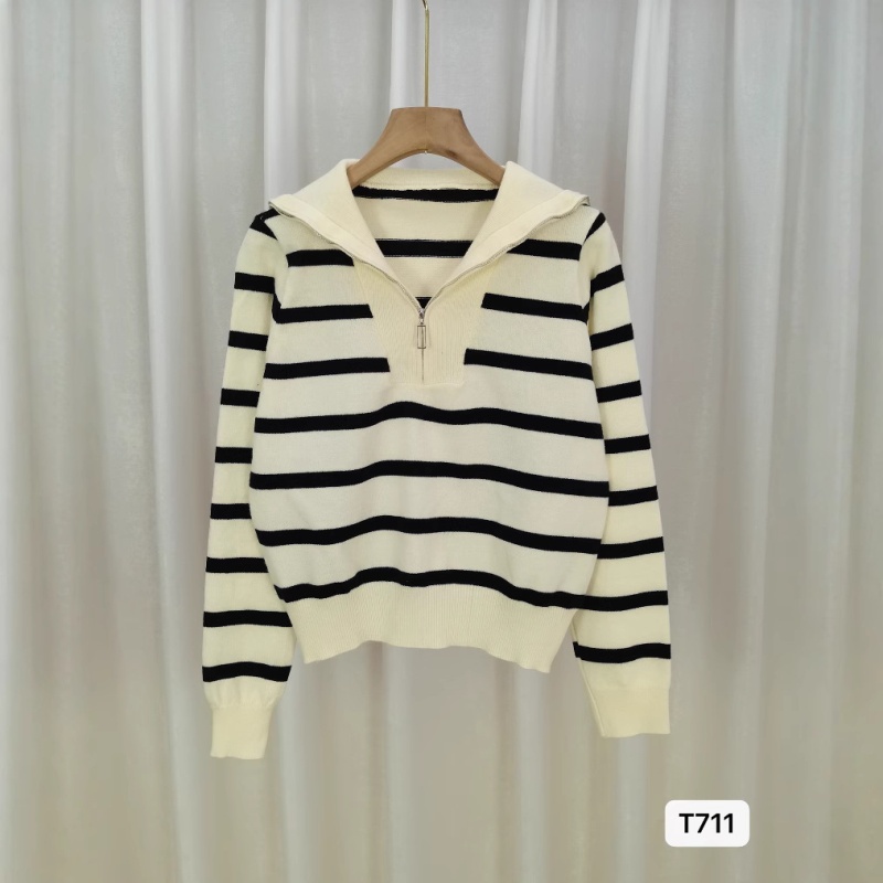 毛衣女装春秋加厚内搭2023新款拉链翻领条纹打底衫短款长袖针织衫