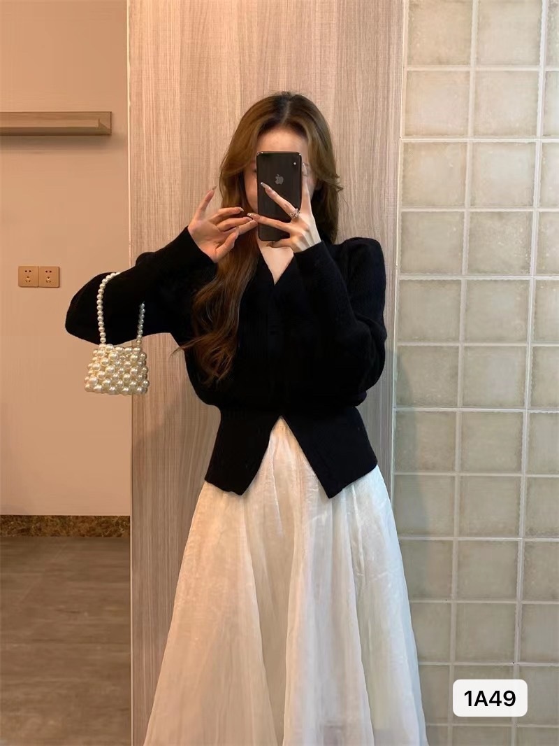v领毛衣外套女 短款春秋高级感收腰独特别致上衣内搭掐腰针织开衫
