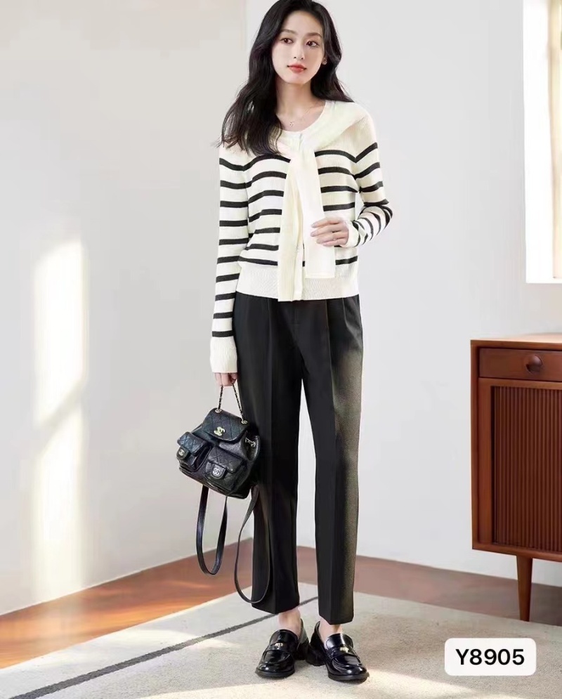 2023年新款秋装设计感小众洋气长袖上衣条纹披肩假两件针织衫女潮
