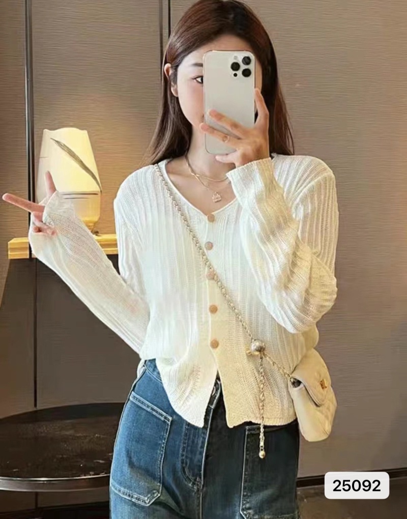 薄款V领长袖针织衫 女装秋季韩版2023新款氛围感宽松短款外穿开衫