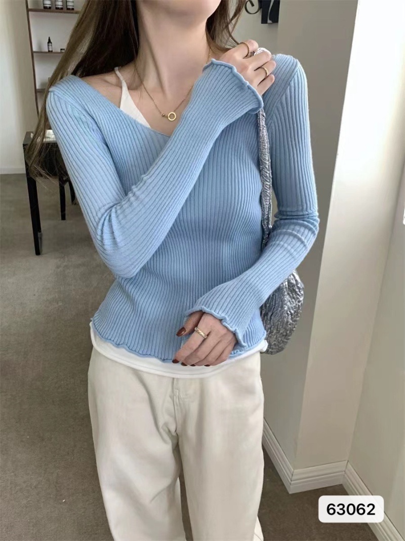 早秋假两件小众修身长袖v领针织衫 女装秋季设计感纯色百搭上衣潮
