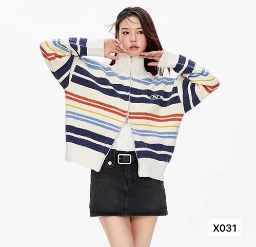 秋季条纹洋气外套女 春秋开衫小个子外套ins小众宽松外穿针织毛