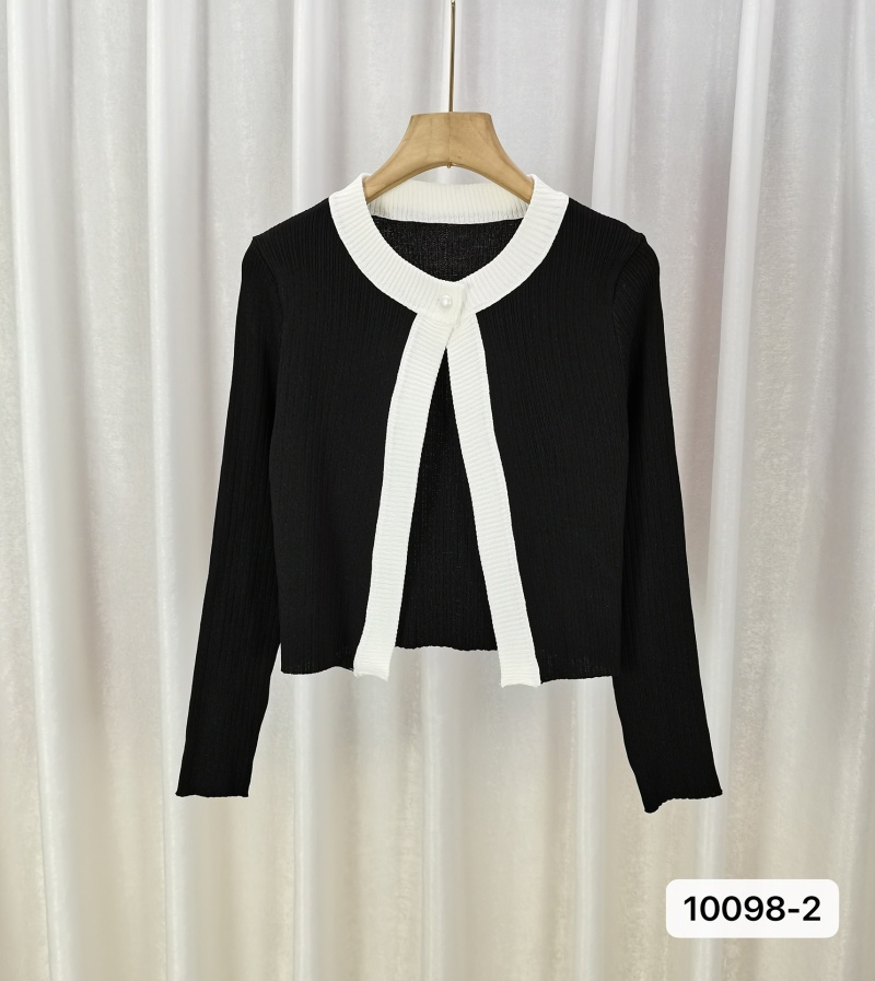 2023春秋季新款时尚百搭小香风圆领拼色一粒扣长袖短款针织开衫女
