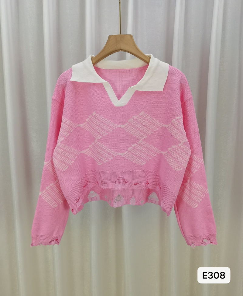 V领针织衫长袖T恤 2023秋冬新款百搭韩版ins短款小个子上衣女潮流