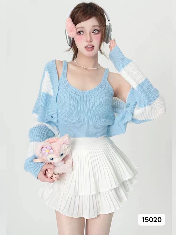 韩系百搭吊带开衫毛衣套装2023春秋新款通勤时尚名媛短款遮肉女装