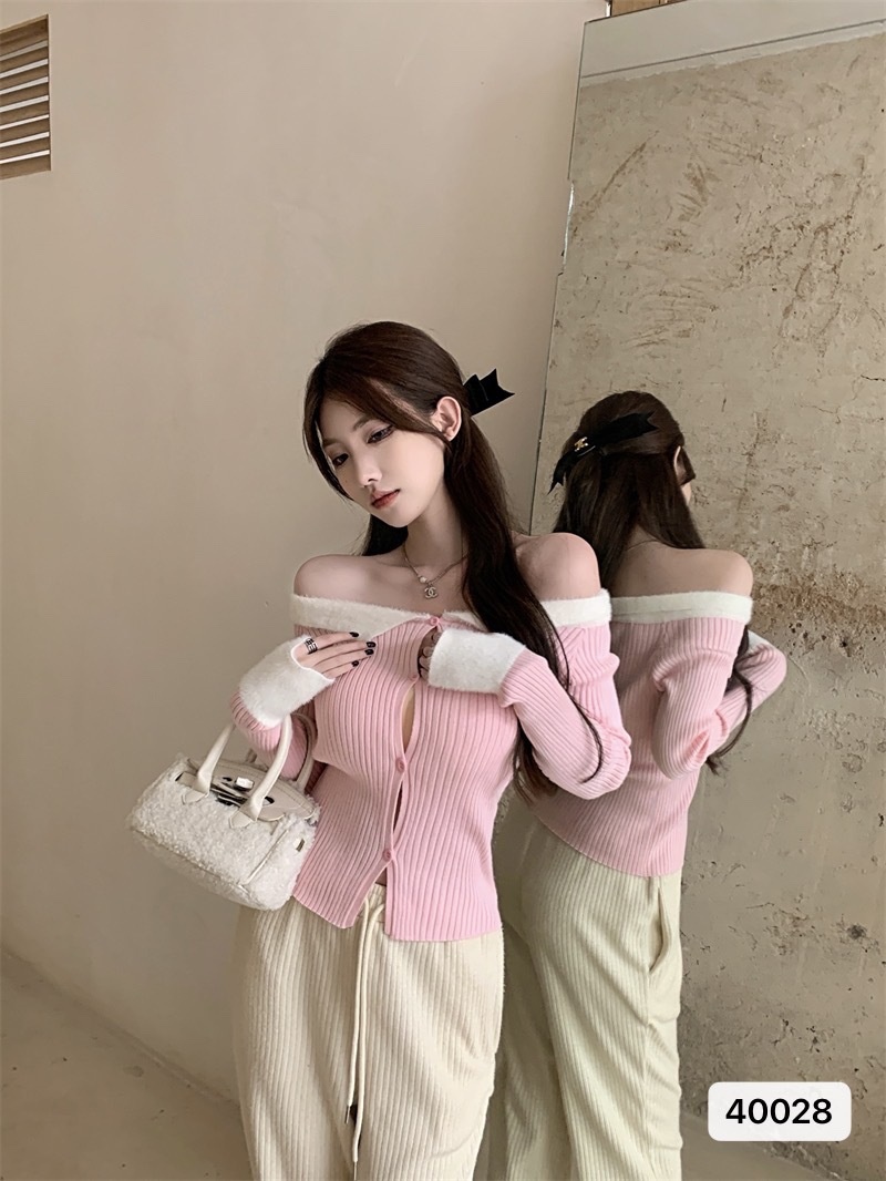 纯欲一字肩毛衣女2023秋冬新款辣妹甜酷气质软糯高级感针织衫上衣