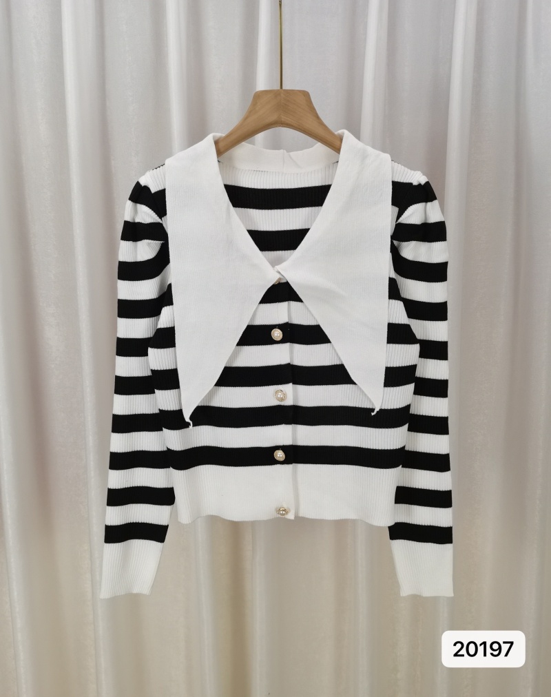 2023年春秋新款爆款条纹针织衫女设计感洋气毛衣韩系泡泡袖上衣潮