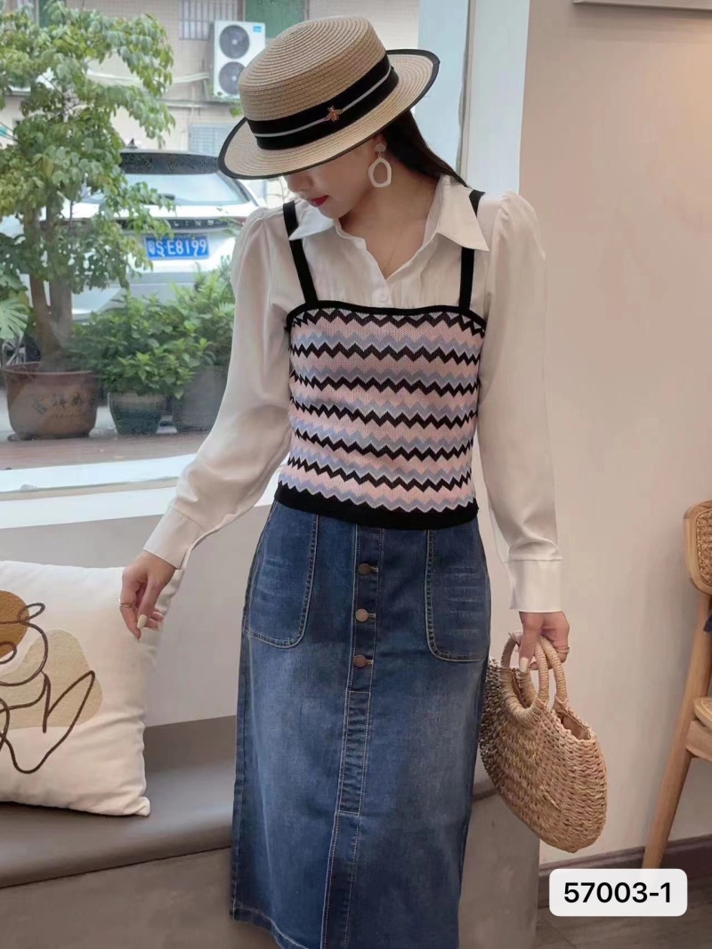 假两件拼接短袖衬衫女夏季甜辣妹短款仙女上衣条纹甜美独特小衫薄